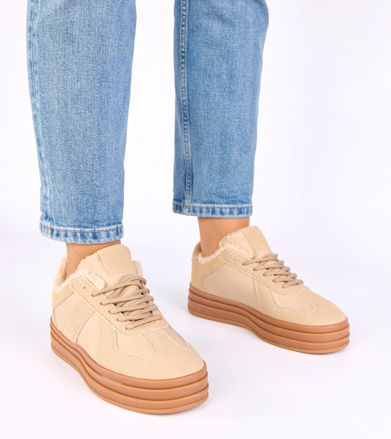 Słowa kluczowe: beżowe sneakersy, beżowe sneakersy ocieplane futerkiem, Beżowe sneakersy ocieplane futerkiem Kelsi, Gemre, sneakersy Gemre, ocieplane sneakersy, sneakersy damskie, buty na jesień, buty na zimę, sneakersy, modne obuwie damskie.