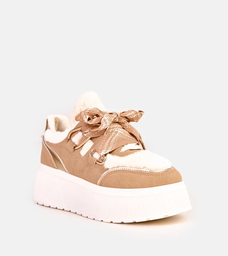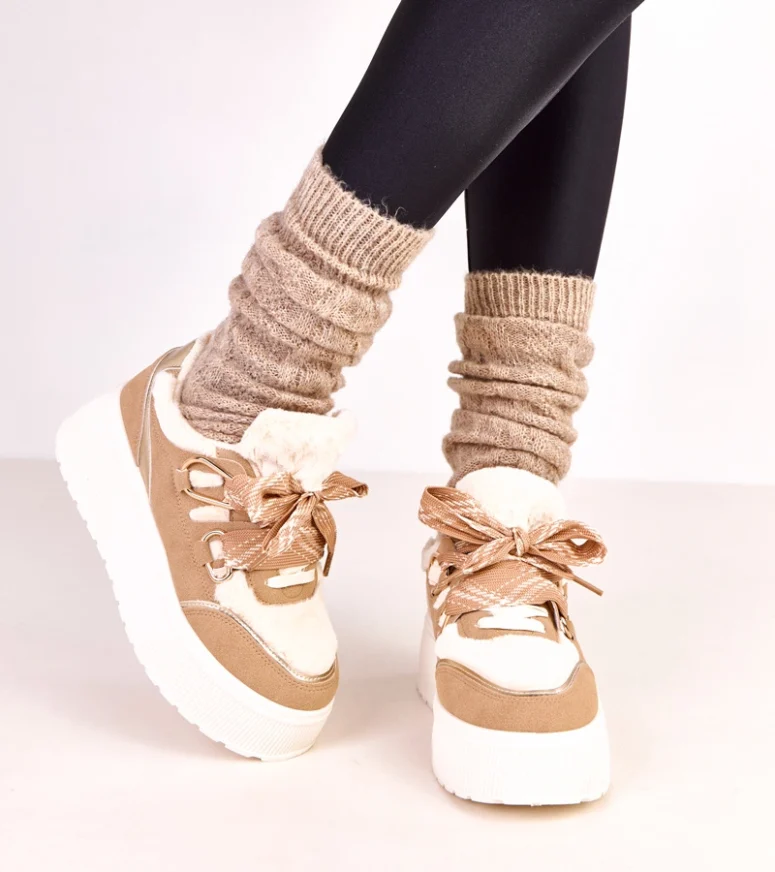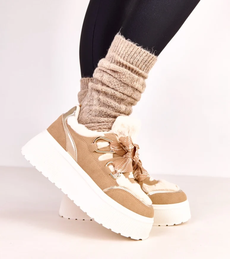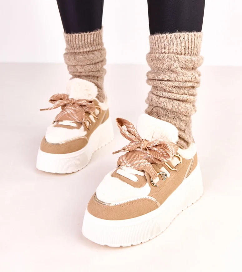 Odkryj beżowe sneakersy ocieplane na platformie Deena – doskonały wybór dla tych, którzy cenią sobie połączenie stylu i funkcjonalności. Te ocieplane sneakersy zostały zaprojektowane z myślą o zapewnieniu maksymalnego komfortu podczas chłodniejszych dni, a ich nowoczesny design sprawia, że doskonale wpisują się w najnowsze trendy modowe.