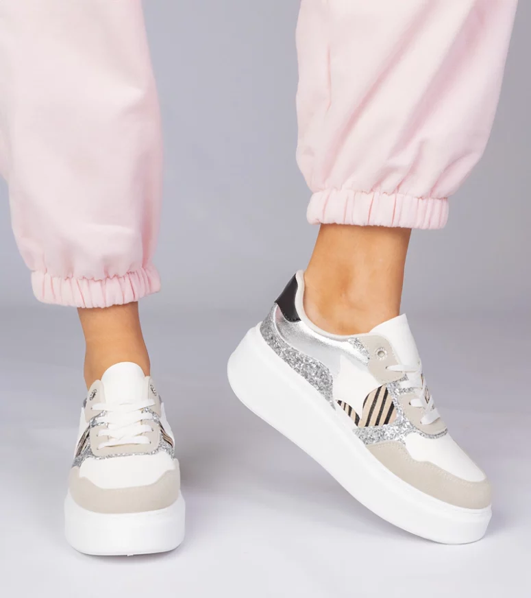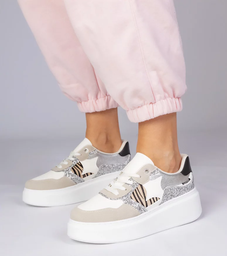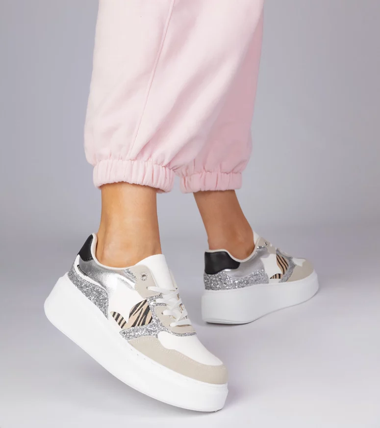 Nie przegap okazji, aby wzbogacić swoją kolekcję obuwia o te wyjątkowe beżowe sneakersy z brokatem i zwierzęcym drukiem Bertula. Zamów je już dziś i doświadcz połączenia komfortu z modnym wyglądem. Te sneakersy to inwestycja w modny wygląd i wygodę, której nie pożałujesz.