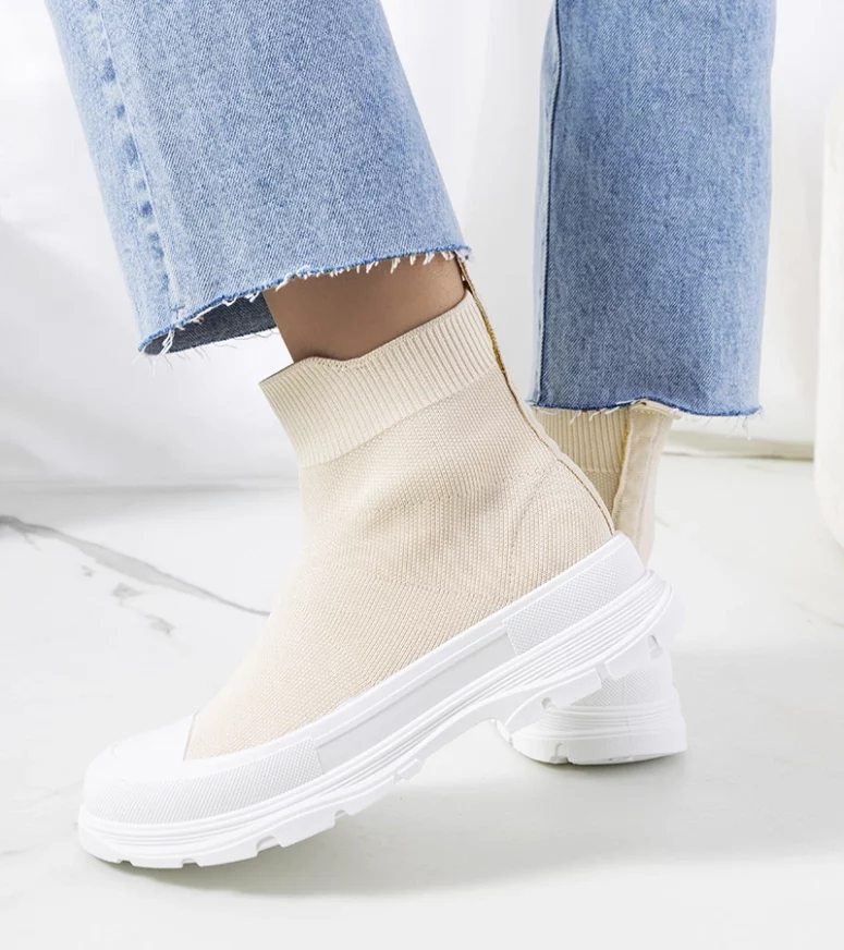 Beżowe sneakersy za kostkę Miki