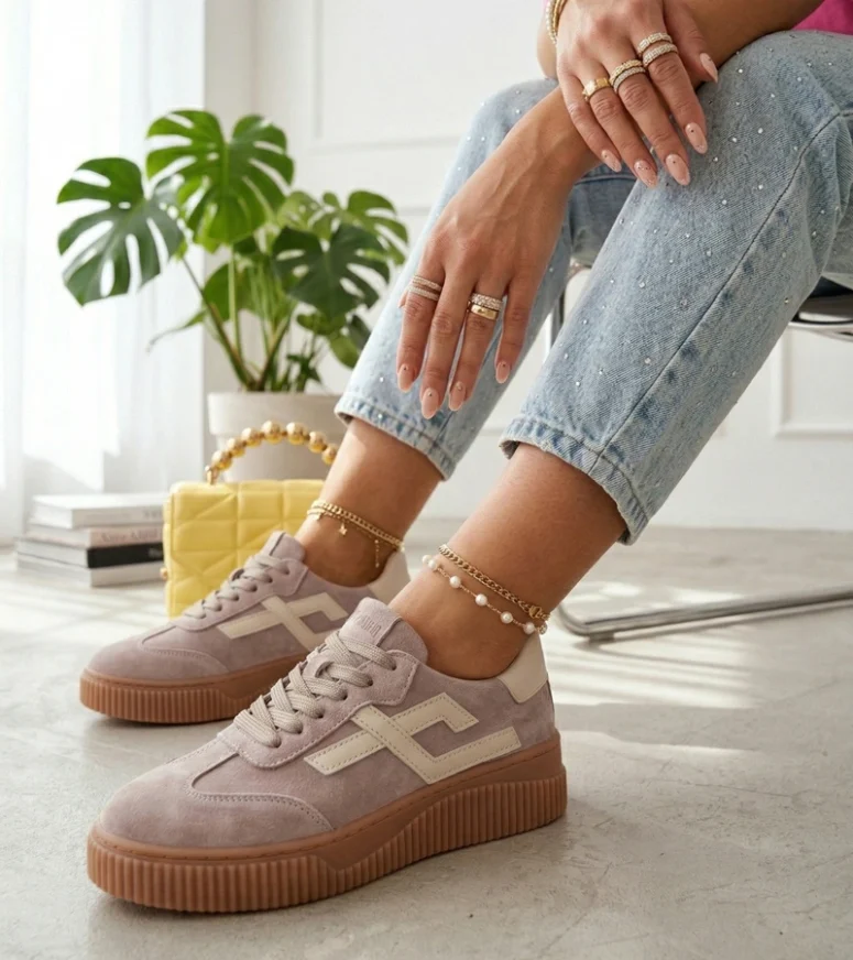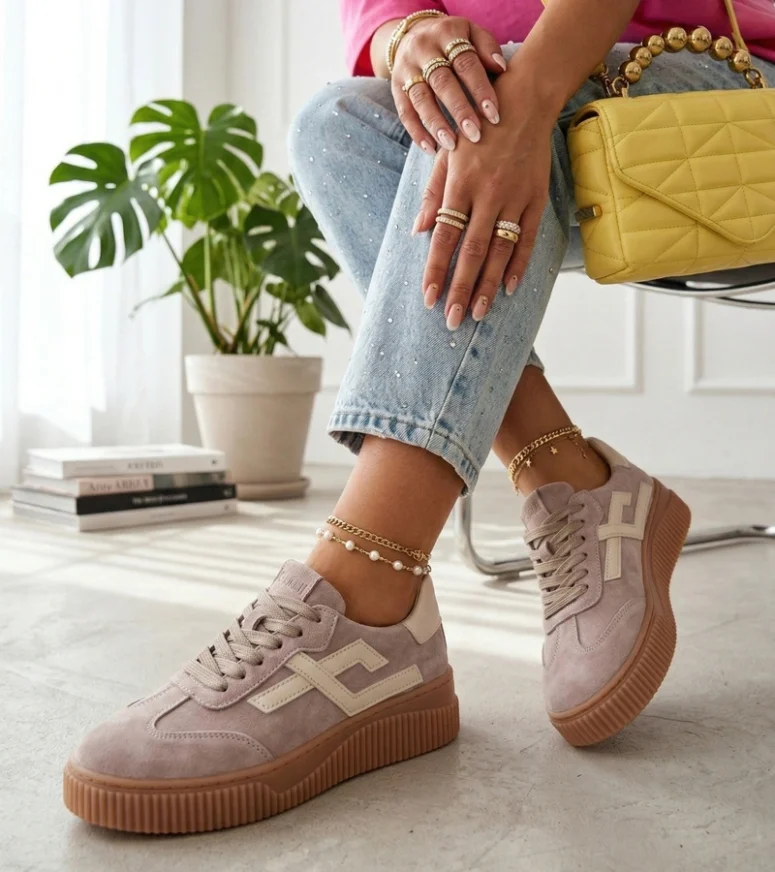 Beżowe Sneakersy Ze Skóry Naturalnej Cambell