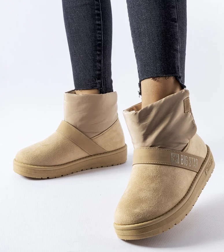 Ich innowacyjna konstrukcja ze wzmacnianą gumową platformą i wysokim cholewką za kostkę chroni przed wilgocią i zimnem, jednocześnie dodając elegancji i stylu. Okrągły nosek gwarantuje wygodę podczas noszenia, a wsuwany design ułatwia szybkie zakładanie i zdejmowanie butów. Te śniegowce Big Star są również niedrogie, co czyni je jeszcze bardziej atrakcyjnymi dla klientek poszukujących przystępnej ceny. Niezależnie od tego, czy planujesz spacer po zaspytanej ulicy czy zabawę na stoku narciarskim, te beżowe śniegowce będą doskonałym wyborem dla każdego zimowego aktywnego dnia.