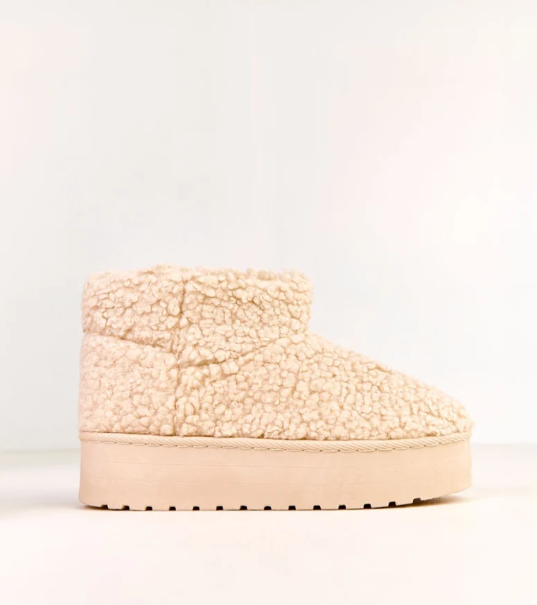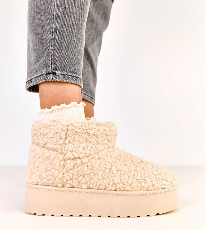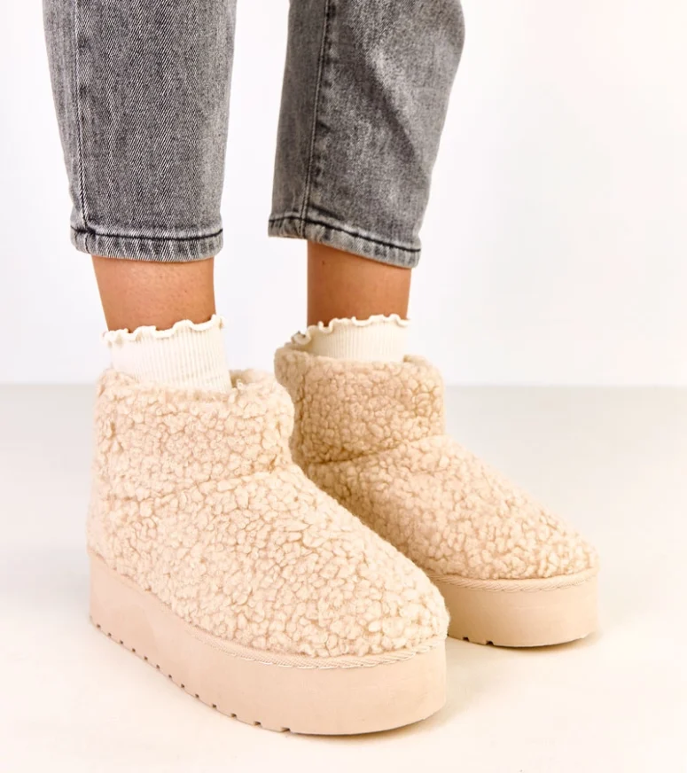 Beżowe śniegowce z cholewką z barankowego futra Lasso