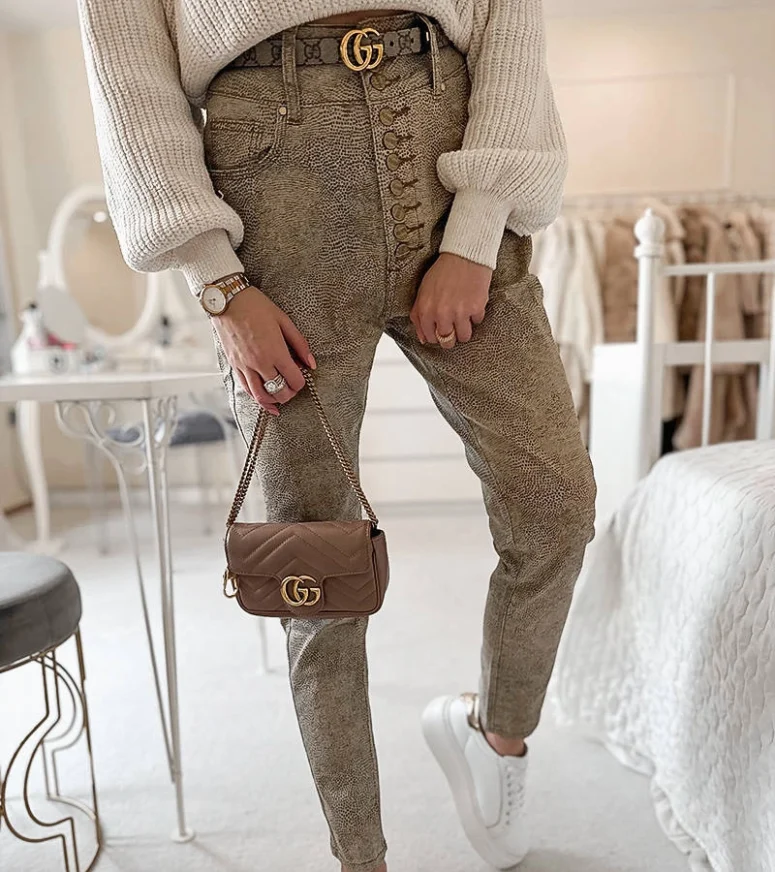 Model Eglantine łączy w sobie nowoczesny krój i ponadczasową prostotę. Te beżowe spodnie z wysokim stanem sprawdzą się zarówno w stylizacjach biurowych, jak i casualowych. Możesz zestawić je z marynarką i szpilkami, tworząc elegancki look do pracy, lub z trampkami i bluzą, uzyskując luźny, miejski charakter. Dzięki dopasowanej nogawce spodnie slim pięknie prezentują się także z botkami i kozakami, co czyni je świetnym wyborem na każdą porę roku.