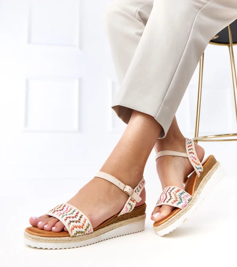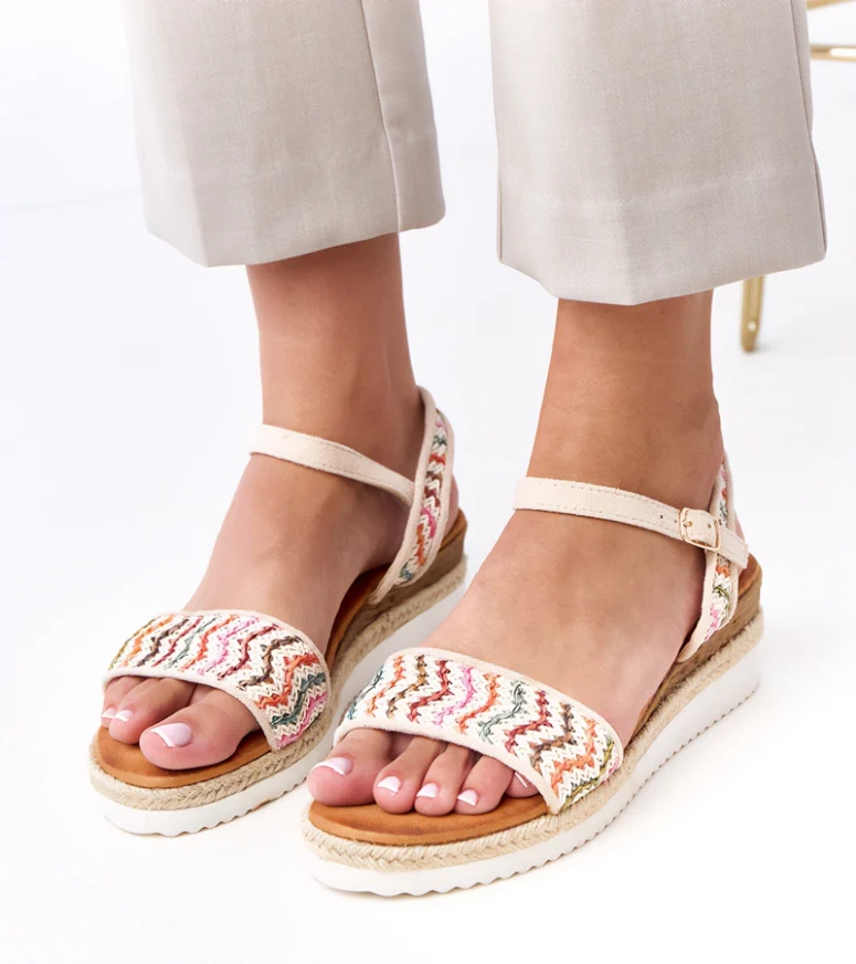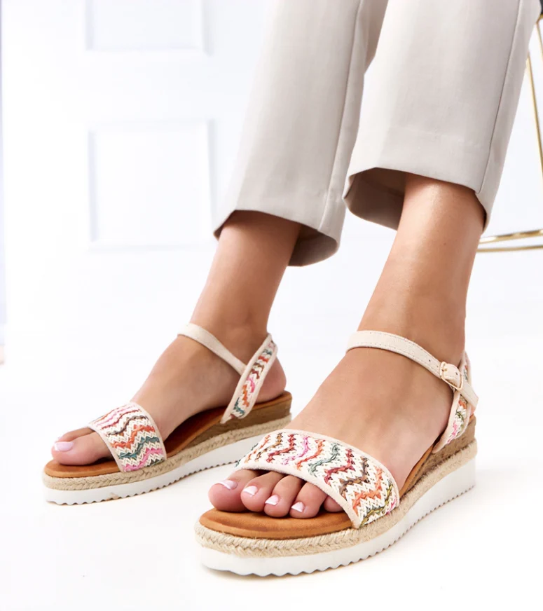 Komfort użytkowania zapewnia stabilna koturna, która optycznie wysmukla sylwetkę, a jednocześnie gwarantuje wygodę podczas chodzenia. Dzięki temu beżowe sandały na koturnie Versala doskonale sprawdzą się podczas długich spacerów, spotkań z przyjaciółmi czy letnich wyjazdów. Neutralny beżowy kolor umożliwia łatwe łączenie obuwia z różnymi elementami garderoby – od zwiewnych sukienek, przez spódnice maxi, po jeansowe szorty czy materiałowe spodnie. To uniwersalne sandały damskie na lato, które szybko staną się bazą wielu stylizacji.