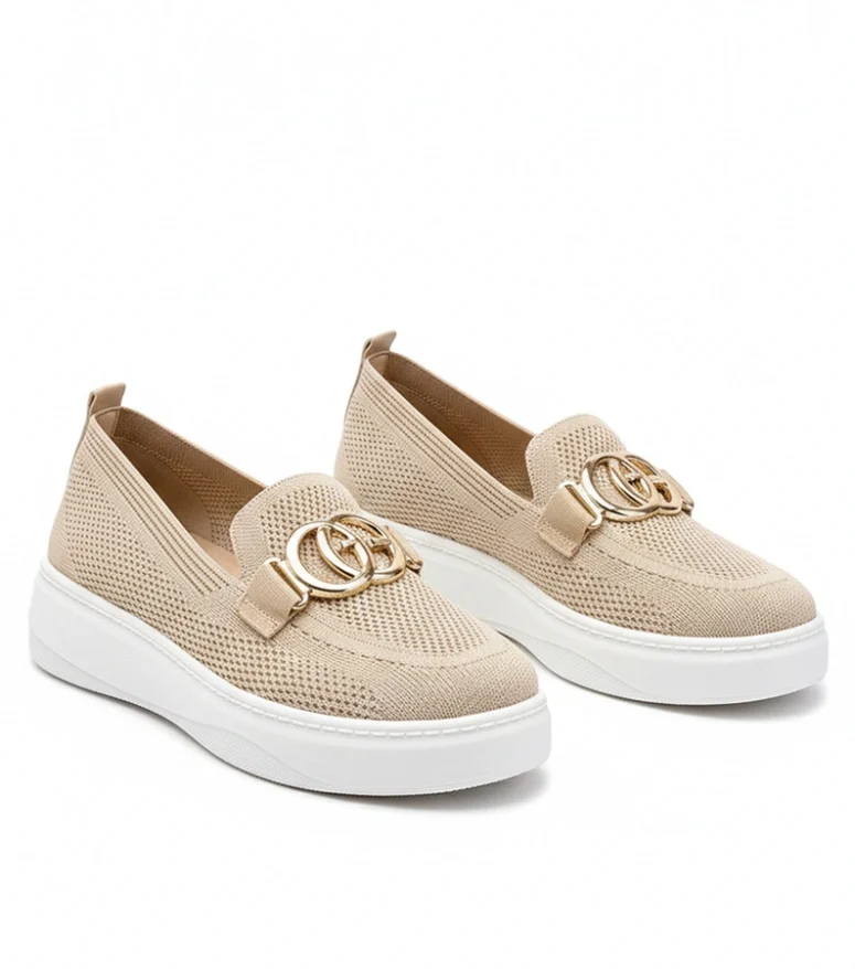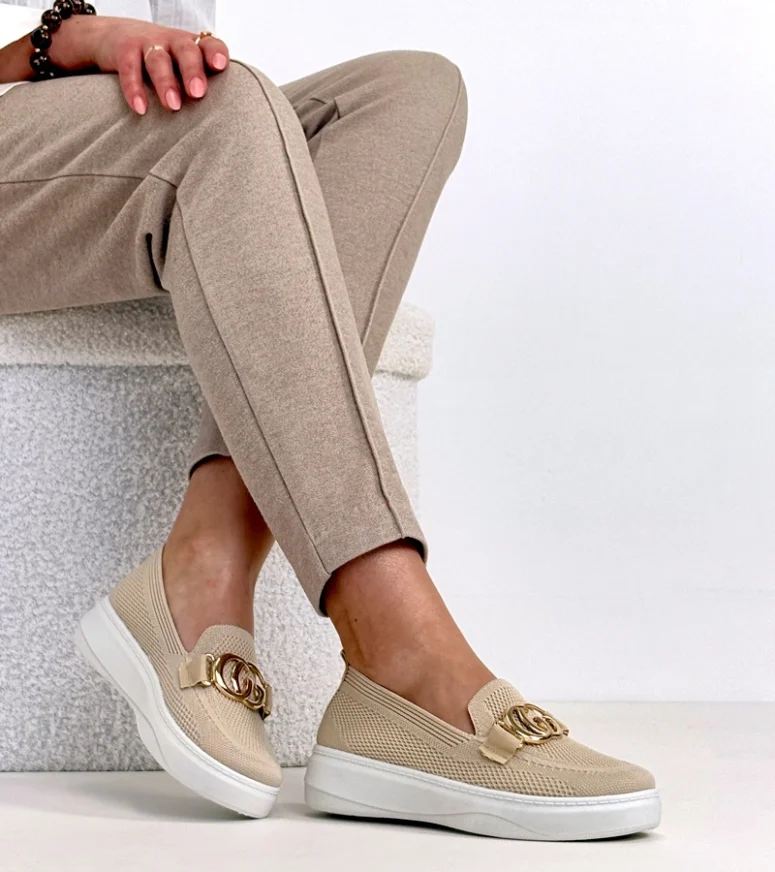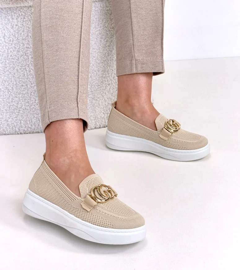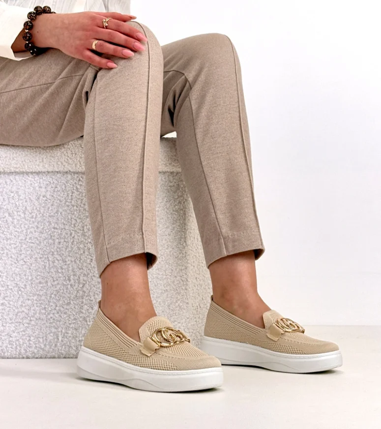 Beżowe Wsuwane Materiałowe Tenisówki Z Klamerką Catherine