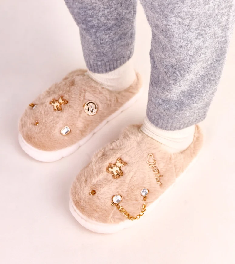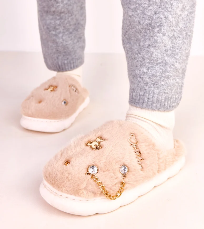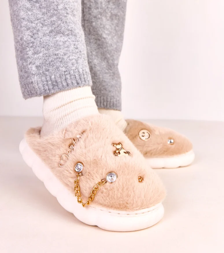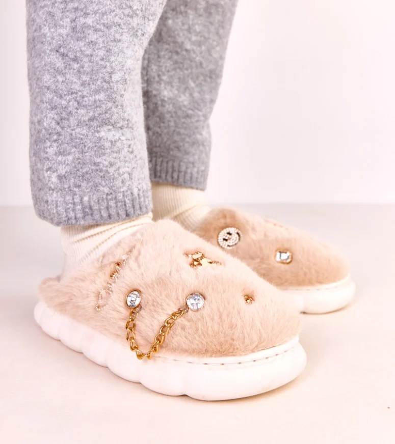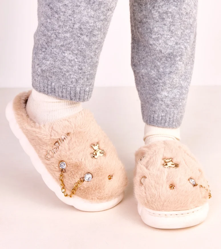 Beżowe zabudowane kapcie z ozdobami Verdugo