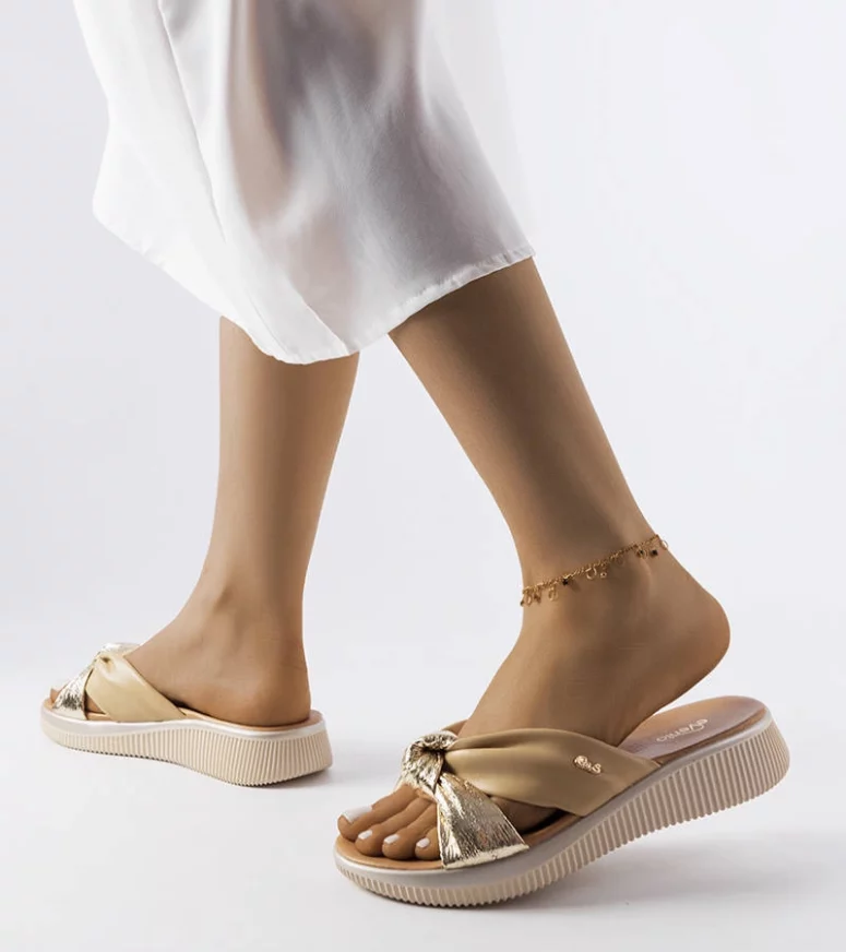 Uniwersalna kolorystyka sprawia, że klapki na koturnie Luce łatwo dopasować do wielu stylizacji. Beż i złoto wpisują się w najnowsze trendy, dodając stylu zarówno eleganckim, jak i bardziej codziennym outfitom. Te sandały damskie na koturnie świetnie prezentują się z letnimi sukienkami, spódnicami midi, szortami czy lnianymi spodniami, dzięki czemu staną się niezbędnym elementem Twojej letniej garderoby.