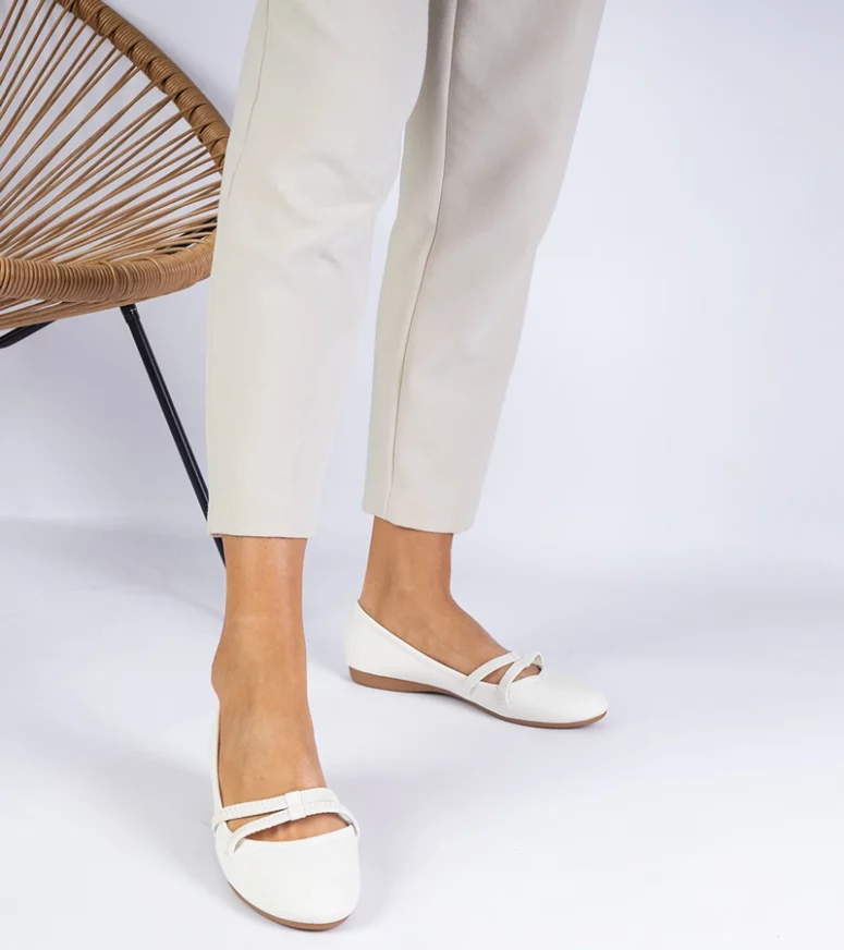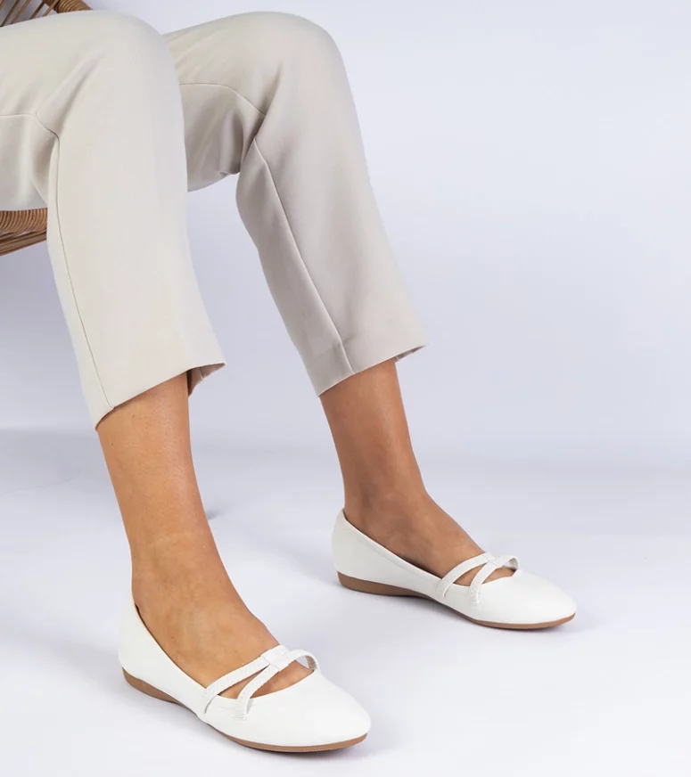 Białe balerinki damskie z ekoskóry matowej Baronna