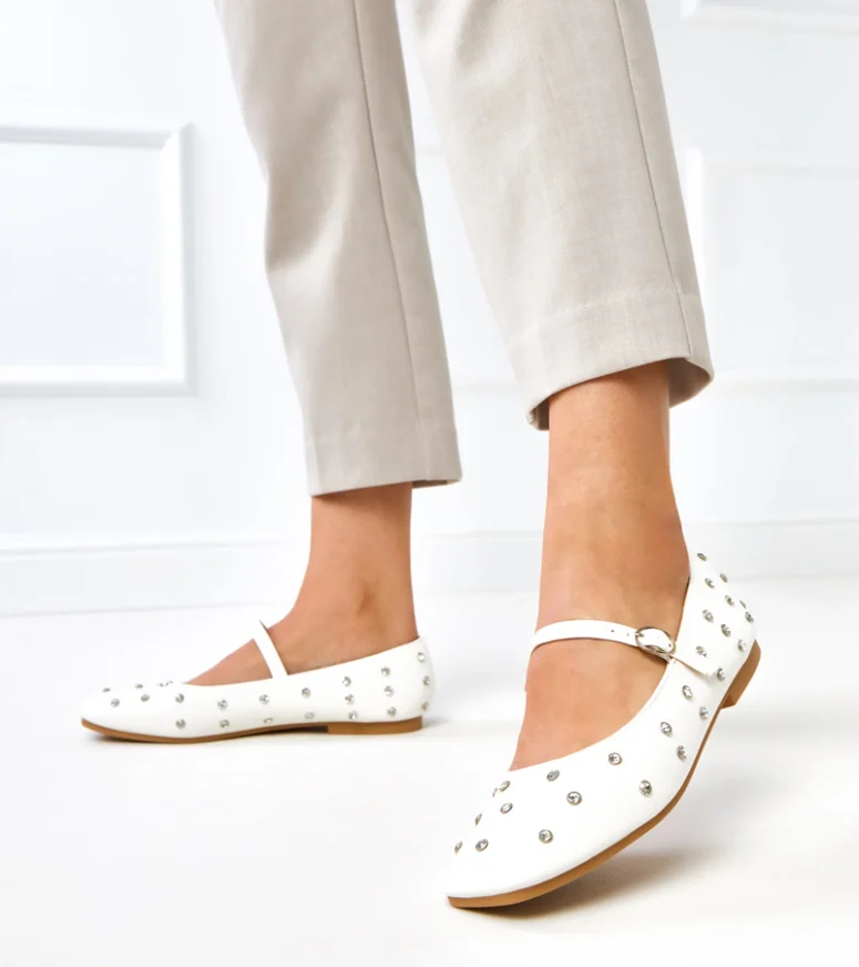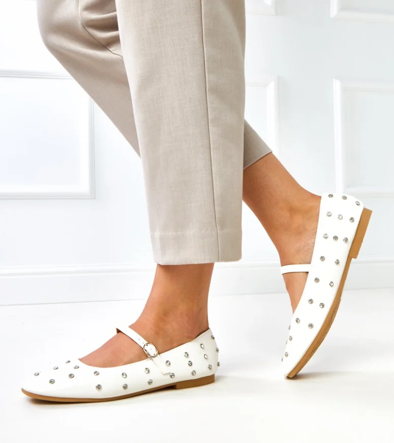 Model Heidi wyróżnia się prostym, ale bardzo kobiecym fasonem, który subtelnie podkreśla stopę. Dzięki uniwersalnemu odcieniowi bieli, balerinki z kryształkami doskonale pasują zarówno do sukienek, spódnic, jak i spodni czy eleganckich kombinezonów. Sprawdzą się na co dzień, do pracy, na przyjęcie, randkę, rodzinne uroczystości, a także jako wygodna alternatywa dla klasycznych szpilek na imprezy i większe wyjścia.