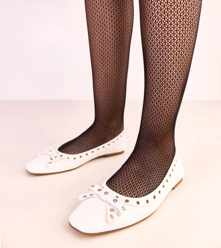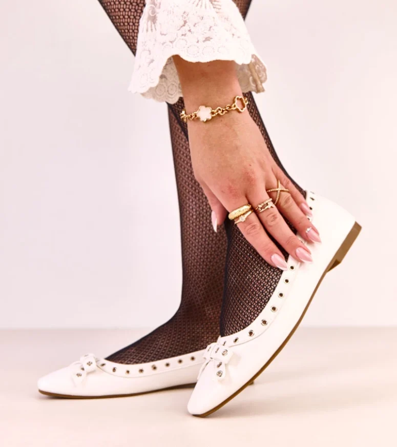 Białe Baleriny z Ozdobnymi Oczkami i Kokardką Baisa – Gemre