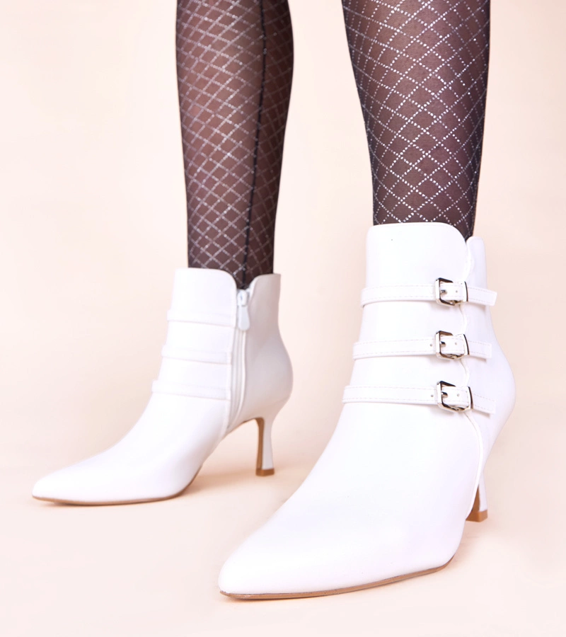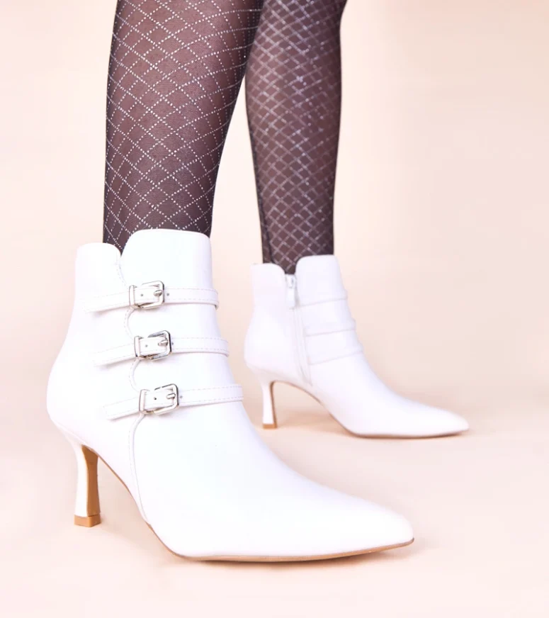 Zapewnij sobie wyjątkowy wygląd i poczucie pewności z botkami Gemre. Nie czekaj i zamów swoje białe botki na szpilce z ozdobnymi sprzączkami już dziś!