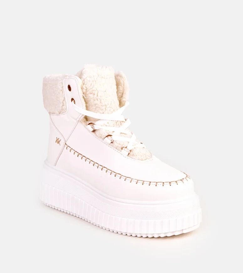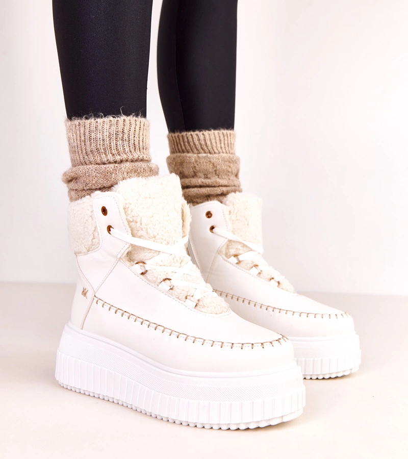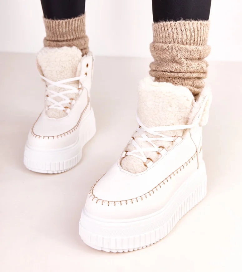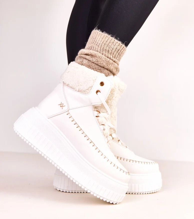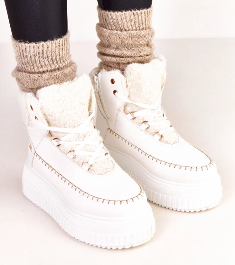 Odkryj wyjątkowe białe botki sportowe ocieplane na platformie Lorraine, które łączą w sobie modny wygląd, komfort noszenia i funkcjonalność na co dzień. To idealny wybór dla kobiet, które cenią sobie połączenie stylu miejskiego z wygodą obuwia sportowego. Botki w białym kolorze świetnie dopełnią zarówno casualowe stylizacje, jak i bardziej wyraziste zestawy streetwearowe.