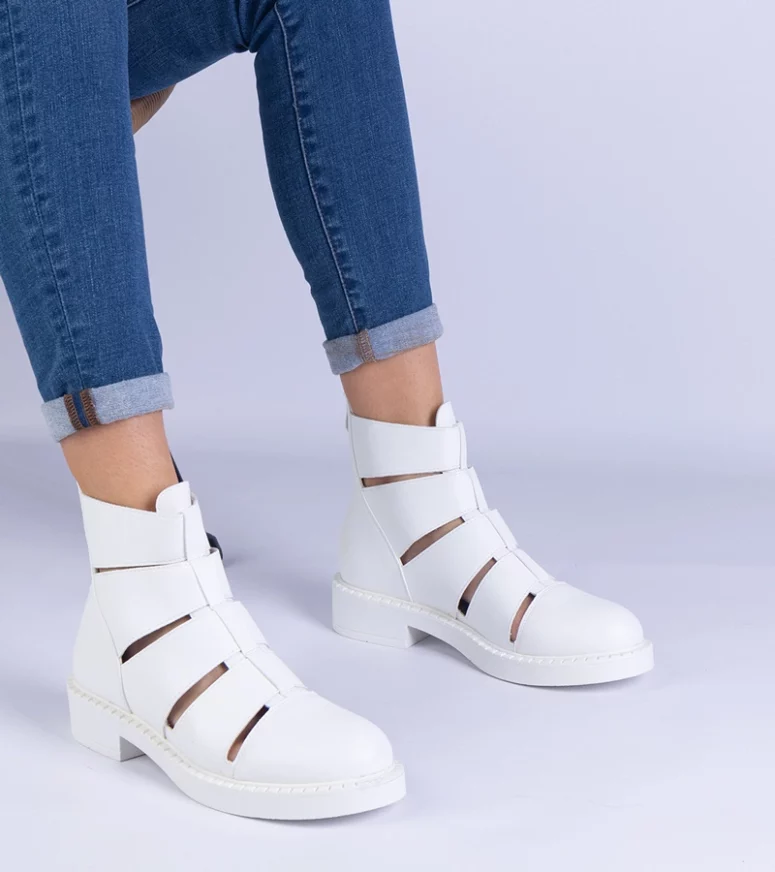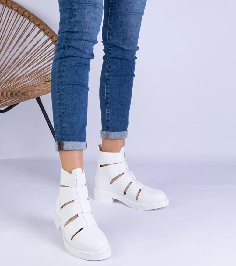 Nie czekaj dłużej i dodaj te wyjątkowe botki płaskie do swojej kolekcji. Ciesz się modnym wyglądem i komfortem każdego dnia. Wybierz białe botki z ekoskóry z wycięciami na płaskim obcasie Kalipso od marki Gemre i podkreśl swój unikalny styl!