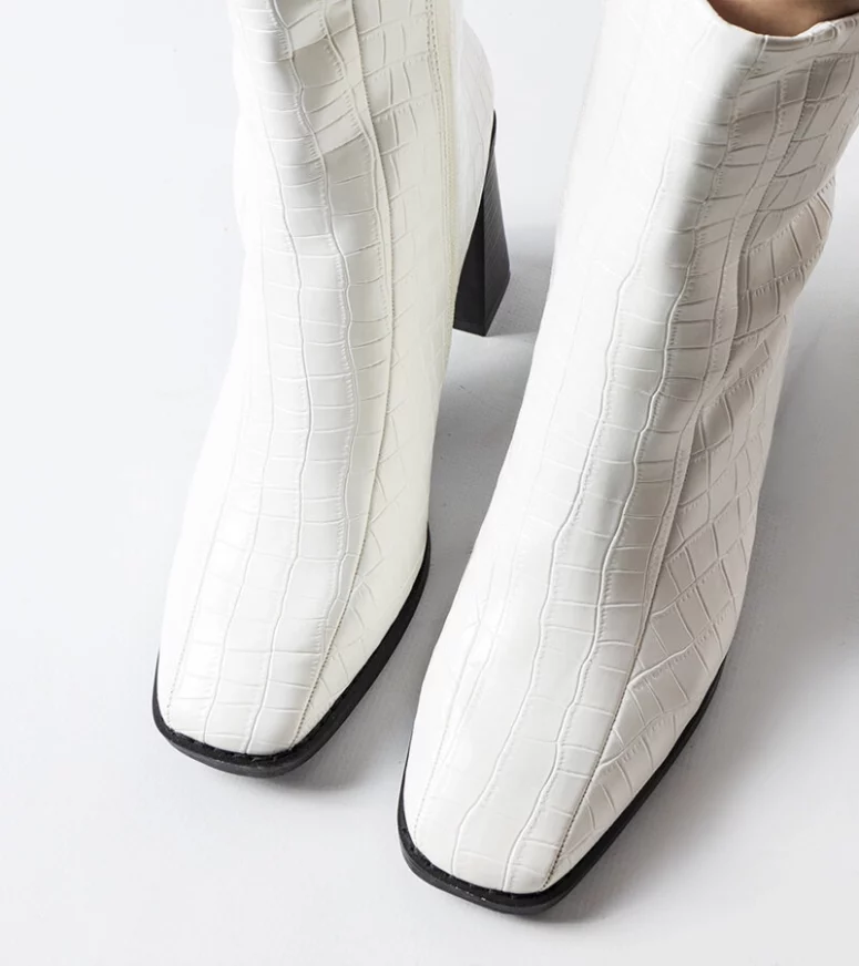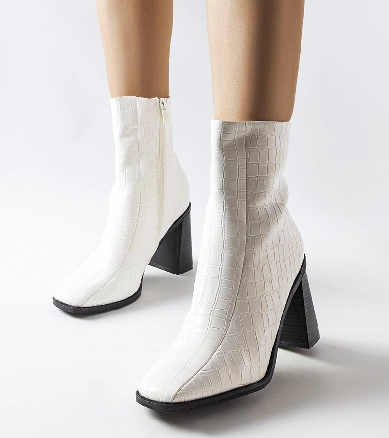 Stabilny słupkowy obcas o wysokim wyglądzie sprawia, że są one must-have w każdej kobiecej szafie. Dodatkowo, ich wysokość za kostkę gwarantuje ochronę przed zimnem i zapewniają ciepło nawet w najchłodniejsze dni. Lakierowane wykończenie dodaje elegancji i sprawia, że te botki są prawdziwym przyciągającym wzrok elementem garderoby. Niech te białe botki z imitacją skóry krokodyla Belluci będą Twoim ulubionym wyborem na sezon zimowy. Ich wyjątkowy design, ocieplenie, wygodny obcas i trendy wygląd czynią je niezbędnym dodatkiem do każdego stroju. Nie zwlekaj, zdobądź je już teraz i ciesz się modą i ciepłem jednocześnie!