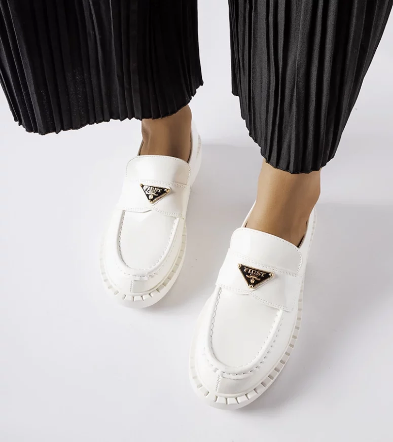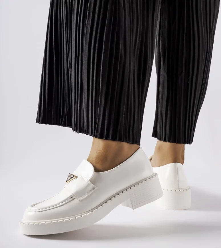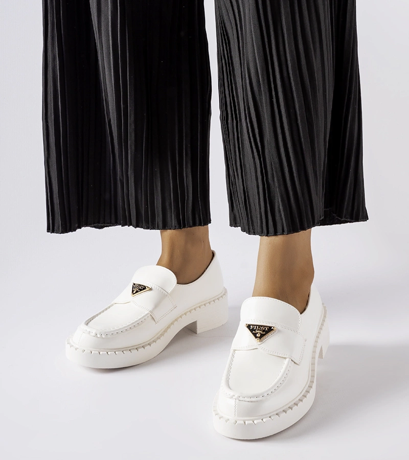 Białe damskie mokasyny Milne są idealnym wyborem dla młodego pokolenia. Wykonane z tworzywa sztucznego, są nowoczesne i na czasie. Mają okrągły nosek, co dodaje im uroku i stylu. Ich niski design sprawia, że są bardzo wygodne do noszenia na co dzień. Dodatkowo, są wsuwane, co ułatwia zakładanie i zdejmowanie. Te białe damskie mokasyny Milne to doskonałe obuwie dla kobiet, które cenią sobie modny wygląd i komfort.