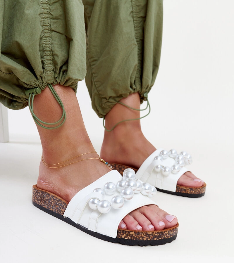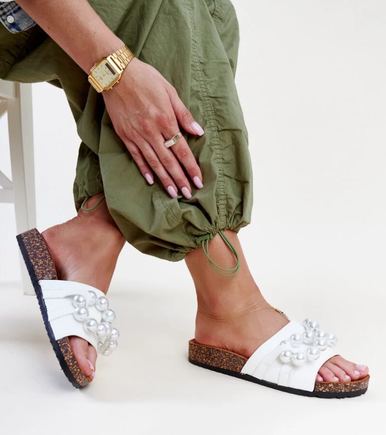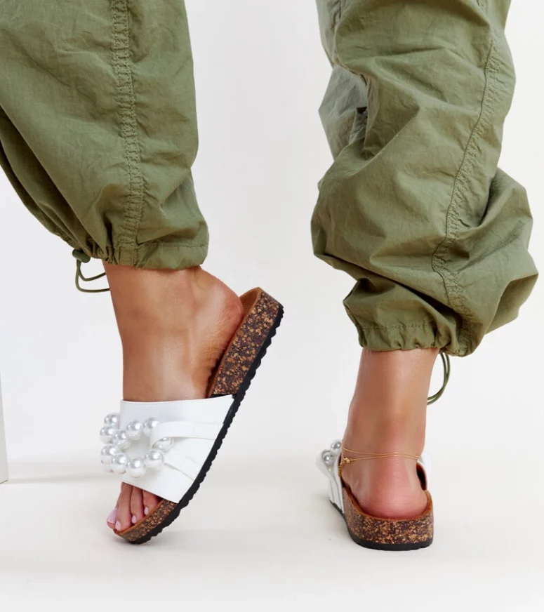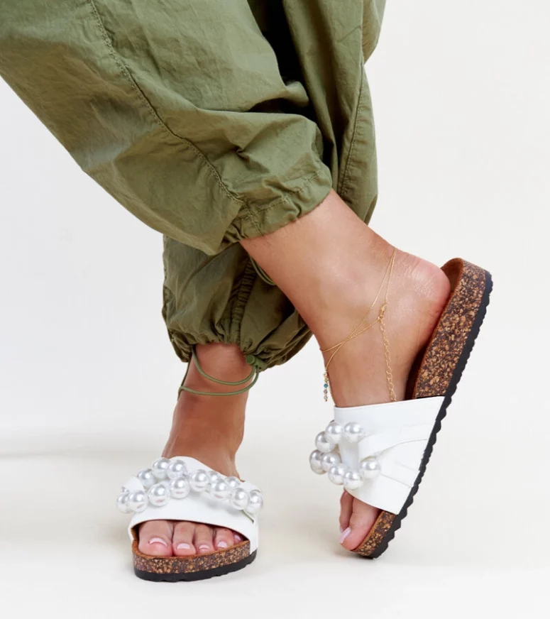 Białe klapki na korkowej podeszwie z koralami Zlatna to idealna propozycja dla wszystkich, którzy szukają innowacyjnych i stylowych butów na lato. Wykonane z wysokiej jakości gumy, zapewniają wygodę i komfort noszenia nawet podczas najgorętszych dni. Ich okrągły nosek dodaje im uroku, a ozdobne korale nadają im modny i oryginalny wygląd. Te tanie klapki są doskonałym wyborem na letnie spacery czy plażowanie – sprawdzą się idealnie podczas upalnych dni.
