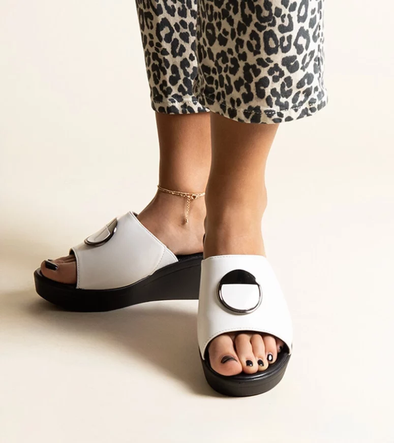 Białe Klapki Damskie na Koturnie z Klamerką Keirenh