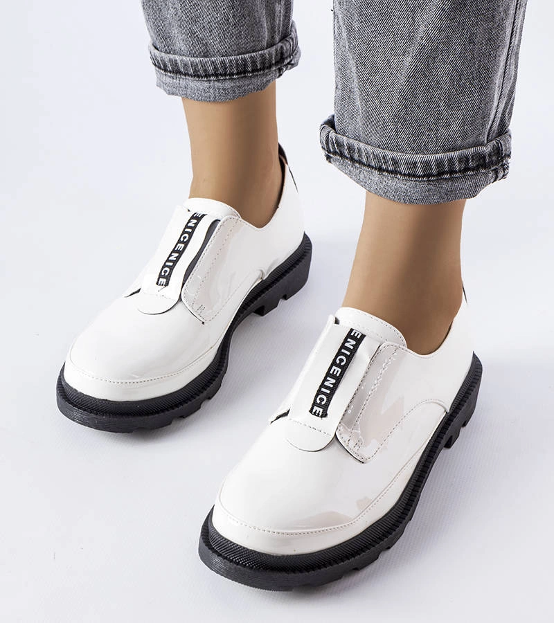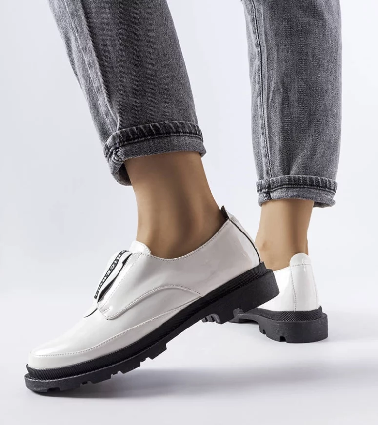 Półbuty Legget na modnej, traktorowej podeszwie z kwadratowym, płaskim obcasem. Niska cholewka przed kostkę. Okrągły nosek i minimalistyczne przeszycia. Wykonane z ekoskóry, natomiast wkładka ze skóry naturalnej. Noś do bluzki z dekoracyjnymi łańcuszkami i skórzanej spódnicy. Numeracja standardowa, prosimy kierować się swoim rozmiarem.