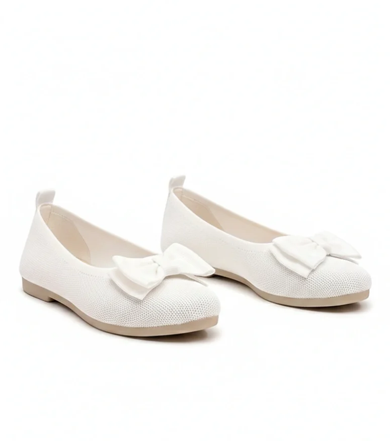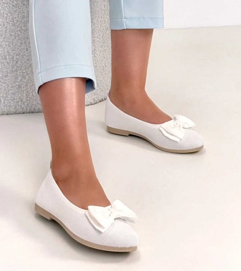 Białe Materiałowe Balerinki Z Kokardą Paisley