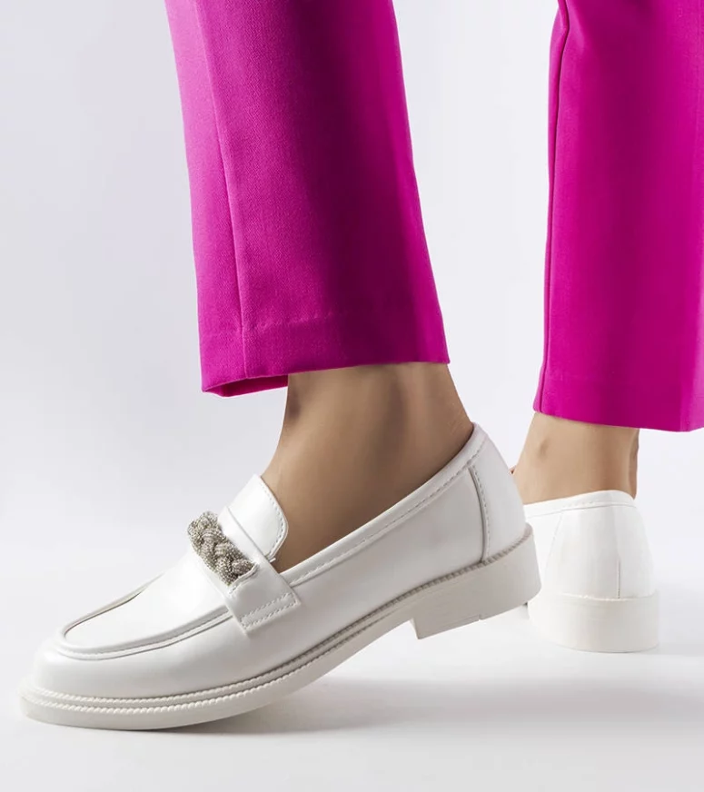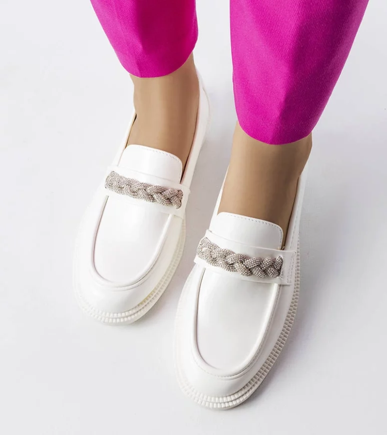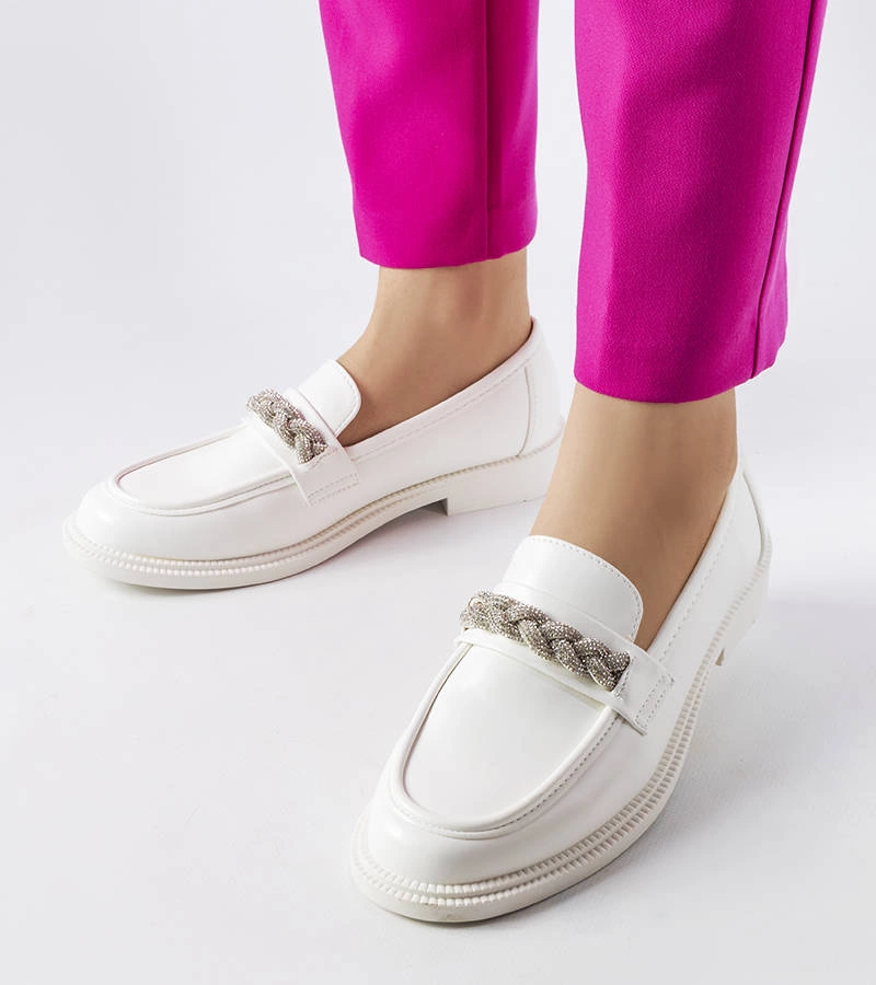 Białe mokasyny zdobione cyrkoniami Montreal