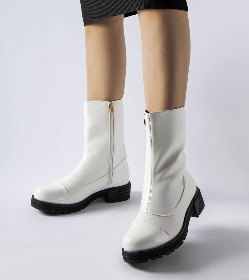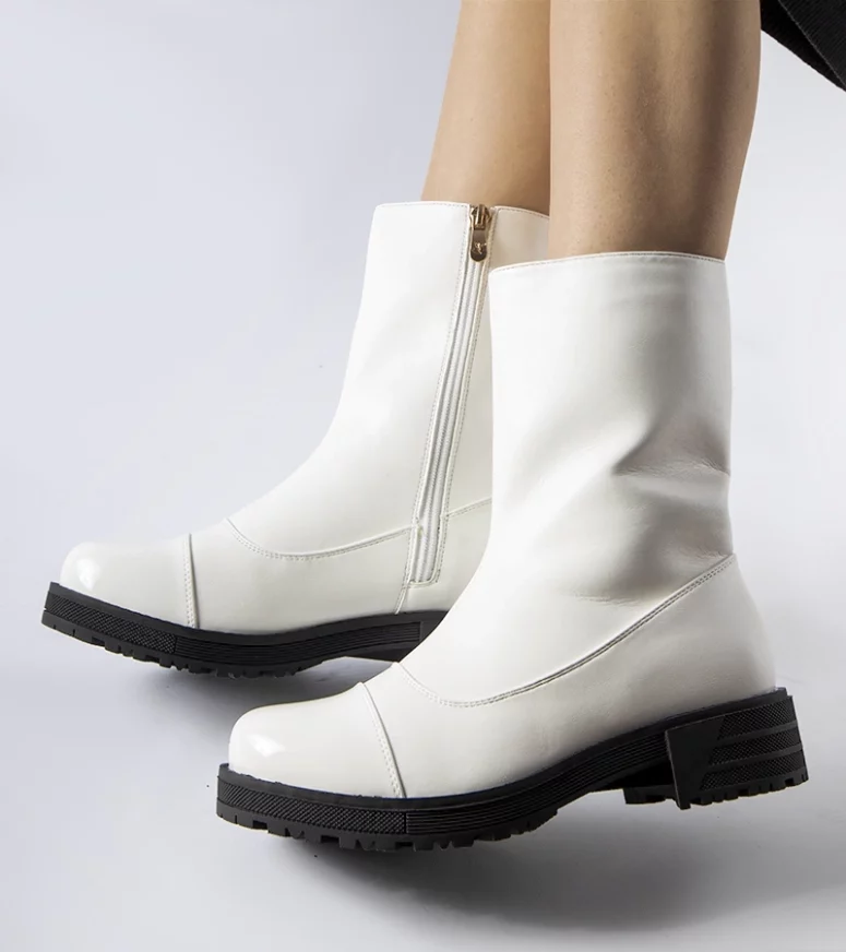 Białe ocieplane klasyczne botki Monsanpolo