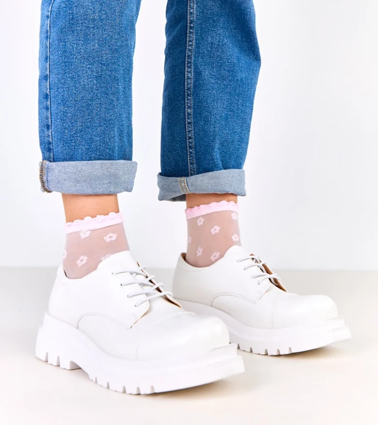 Przedstawiamy białe półbuty na traktorowej podeszwie Jetta, które łączą w sobie nowoczesny design z wyjątkowym komfortem użytkowania. Te stylowe półbuty to doskonały wybór dla osób ceniących sobie zarówno estetykę, jak i funkcjonalność. Dzięki uniwersalnemu kolorowi, idealnie wpiszą się w każdą garderobę, stając się niezastąpionym elementem wielu stylizacji.