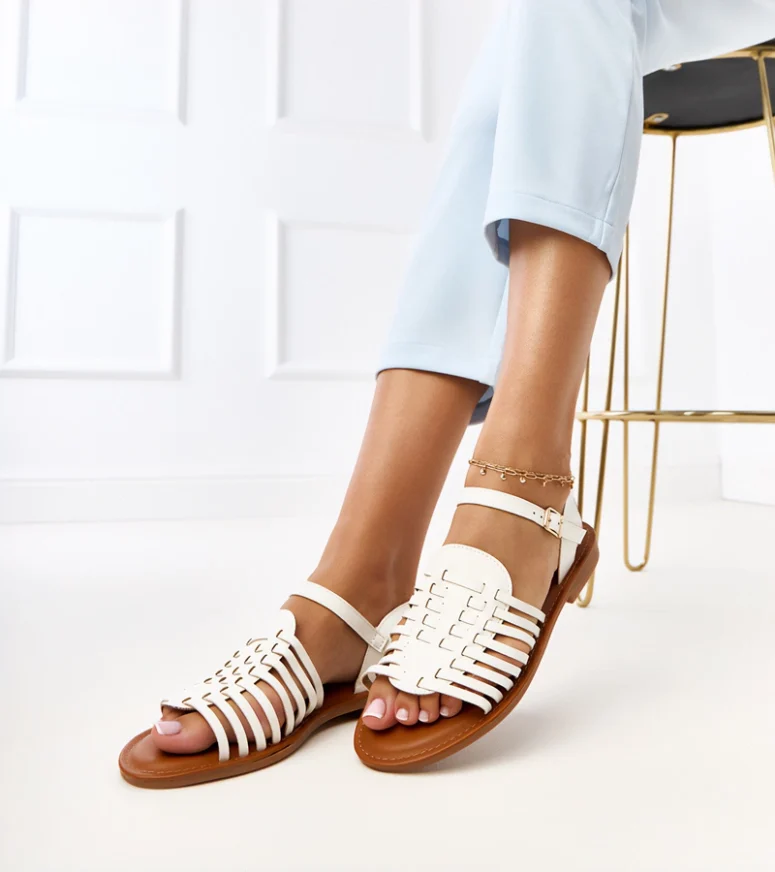 Model Białe sandały rzymianki płaskie Everlay wyróżnia się wygodną, płaską podeszwą, która gwarantuje komfort użytkowania przez cały dzień. Dzięki temu jest to doskonała propozycja dla kobiet, które dużo chodzą i nie chcą rezygnować z eleganckiego wyglądu. Delikatne paski stabilnie trzymają stopę, jednocześnie subtelnie ją eksponując. Białe sandały Gemre znakomicie podkreślają opaleniznę i dodają lekkości każdej stylizacji. To idealne sandały damskie na lato, które bez trudu dopasujesz do garderoby w stylu casual, boho czy romantycznym.