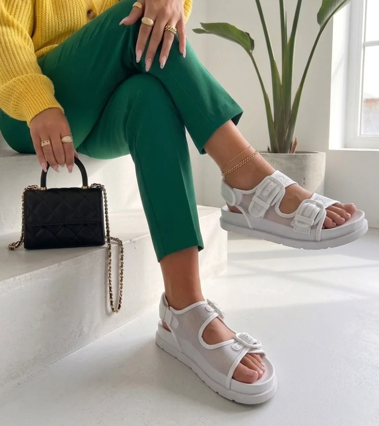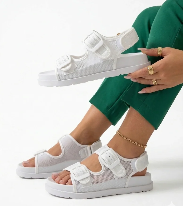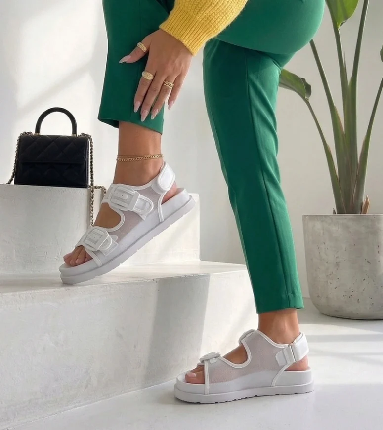 Białe Sandały Z Regulowanymi Paskami Mila