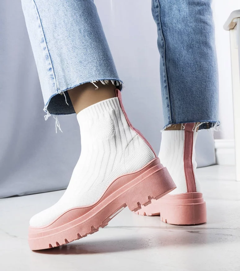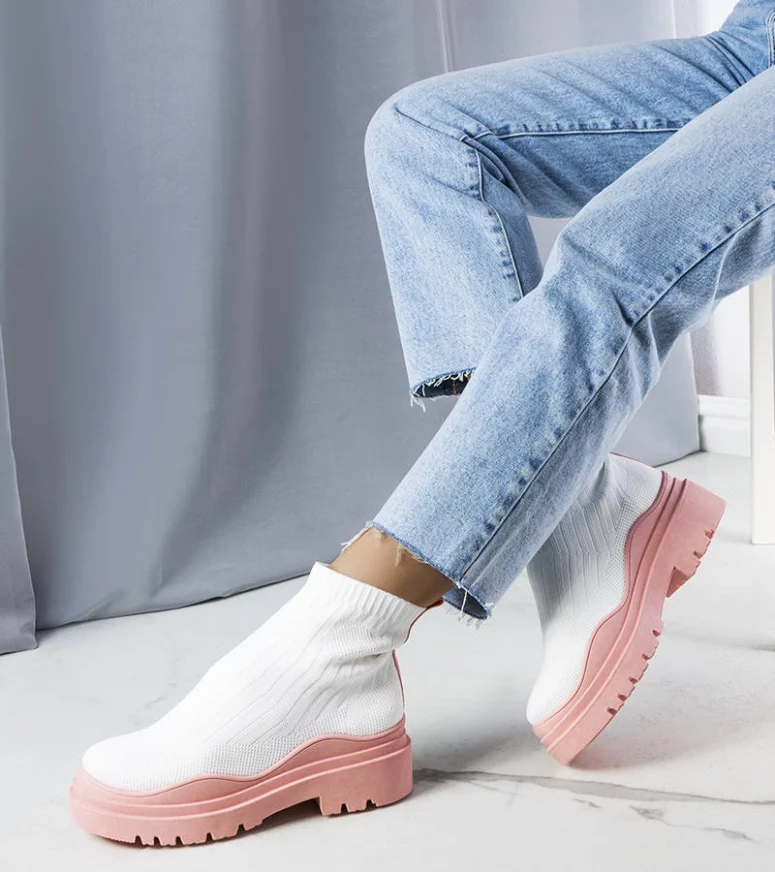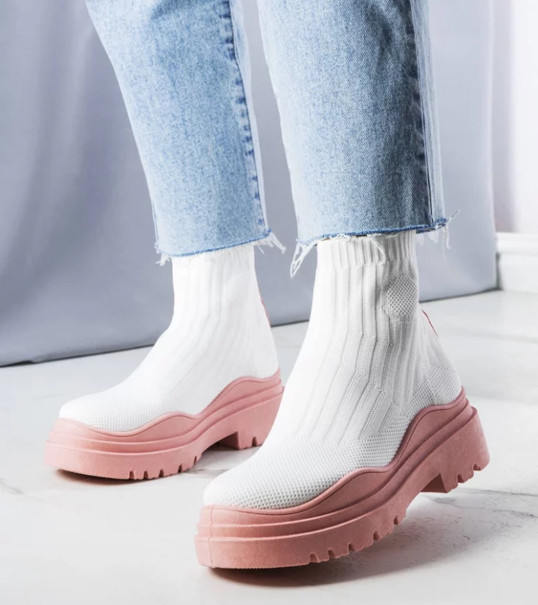 Botki Cali wsuwane, wykonane z elastycznej tkaniny. Cholewka sięga do połowy łydki, ozdobiona z tyłu paskiem w kolorze podeszwy. Osadzone na grubej, kolorowej podeszwie z protektorem, który zwiększa przyczepność buta do podłoża. Z okrągłym noskiem. Botki na masywnej podeszwie to najgorętszy trend ostatnich sezonów! Numeracja standardowa, prosimy kierować się swoim rozmiarem.