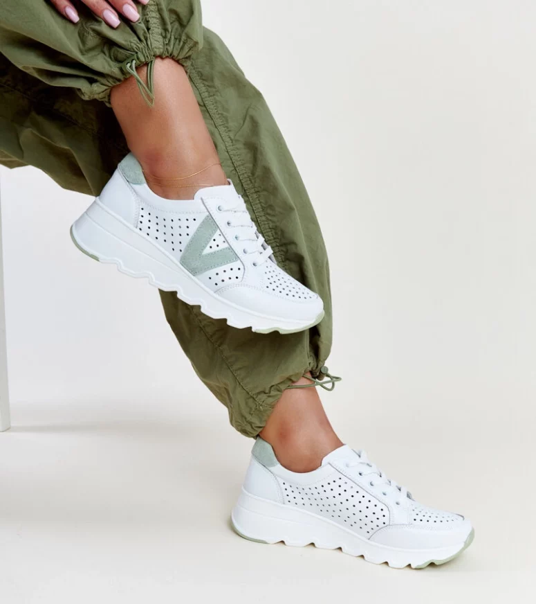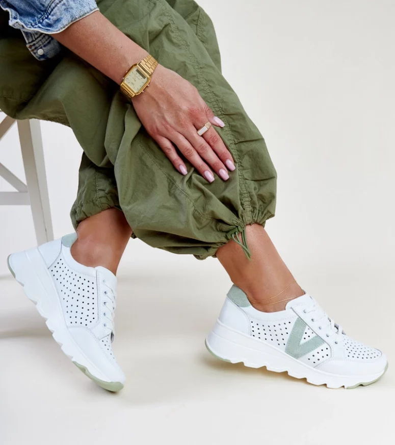Białe skórzane sneakersy ażurowe VINCEZA to sztos w świecie obuwia! Wykonane z wysokiej jakości skóry, posiadają gumową podeszwę zapewniającą wygodę i trwałość. Są sznurowane, co pozwala na idealne dopasowanie do stopy. Buty posiadają średni obcas oraz ażurowy design, który nadaje im lekkości i elegancji. Ich letni charakter sprawia, że są idealnym wyborem na gorące dni. Mają niski krój, okrągły nosek i precyzyjne szycie, które dodaje im wyjątkowego uroku. Niech te buty staną się Twoim ulubionym wyborem na lato!