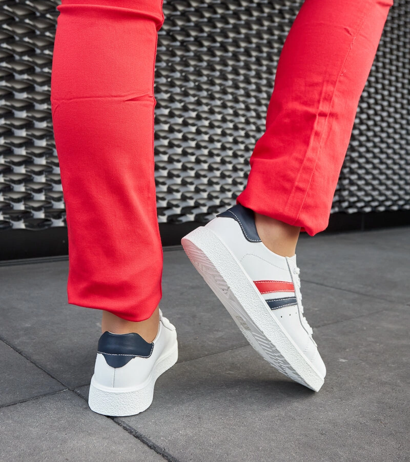Białe skórzane wiązane sneakersy Camilla to idealne buty na letnie dni. Są one popularnym wyborem wśród modnych osób, ze względu na swoje niskie i stylowe wykonanie. Wykonane z wysokiej jakości skóry, zapewniają komfort i trwałość. Ich gumowa podeszwa dodaje im innowacyjnego charakteru, a sznurowany design gwarantuje doskonałe dopasowanie do stopy. Sneakersy mają okrągły nosek, co nadaje im elegancki wygląd. To obuwie jest nie tylko trendem, ale również praktycznym wyborem na gorące dni, gdyż skóra oddycha, pozwalając stopom swobodnie się poruszać. Dzięki temu, te białe skórzane wiązane sneakersy Camilla są połączeniem stylu, wygody i funkcjonalności.