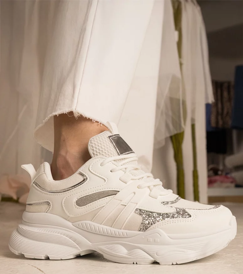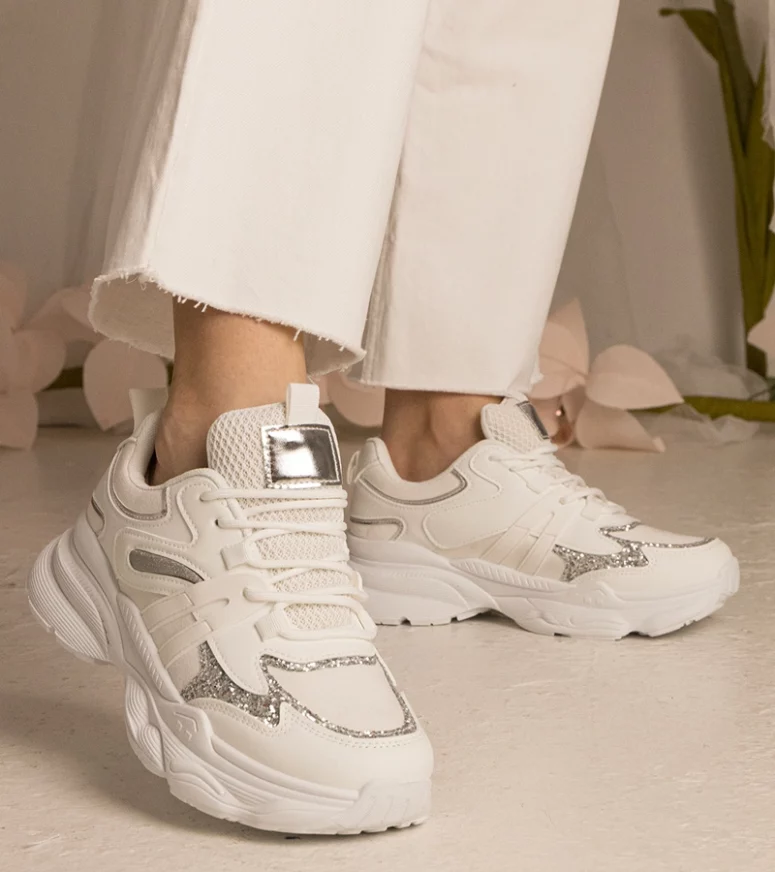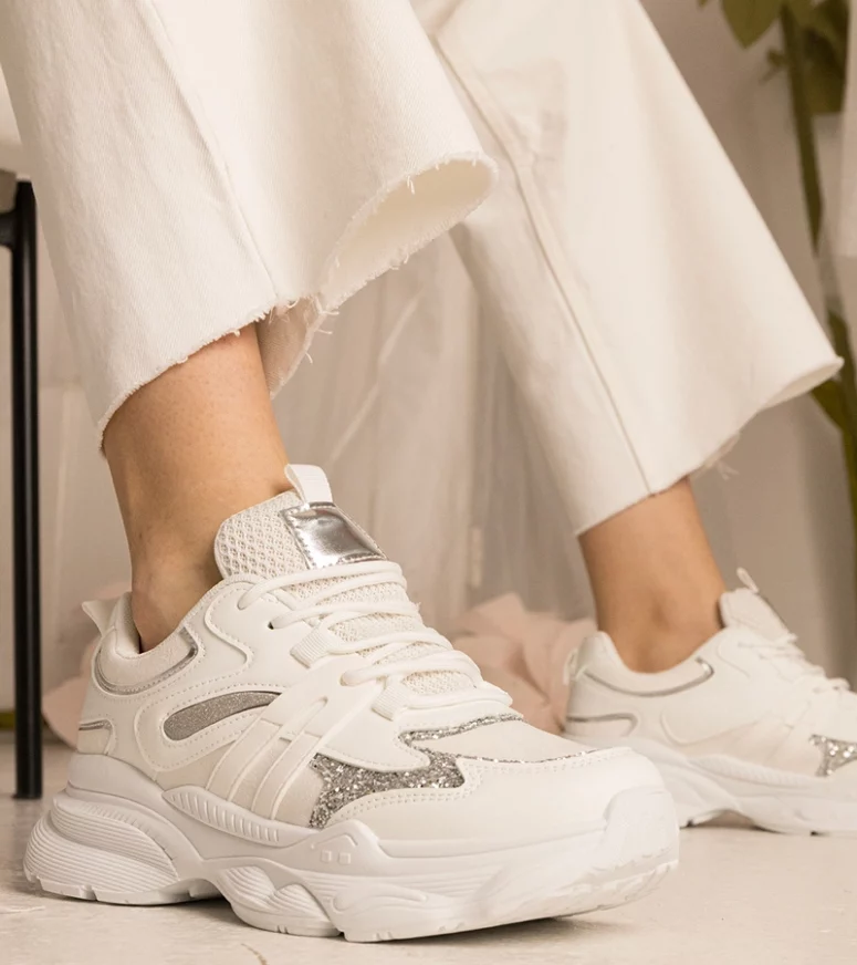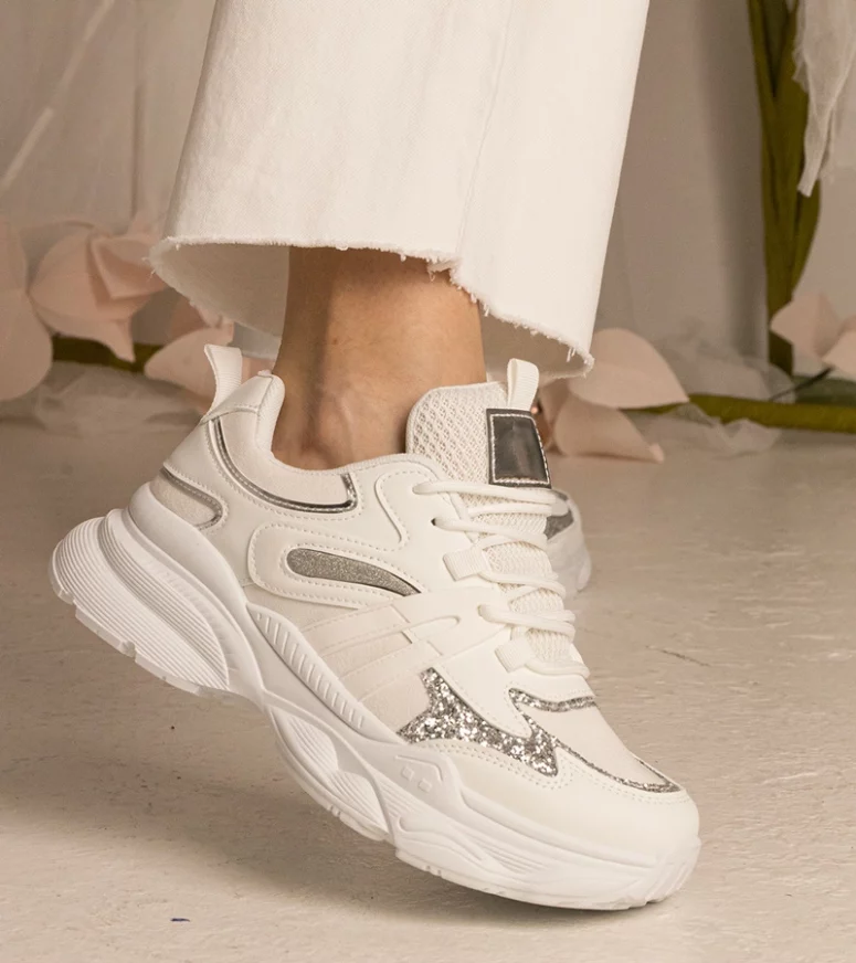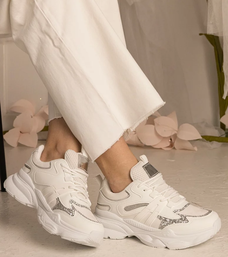 Nasze sneakersy damskie zostały zaprojektowane z myślą o kobietach, które cenią sobie zarówno modę, jak i komfort. Wykonane z najwyższej jakości materiałów, zapewniają trwałość i wygodę przez cały dzień. Dzięki unikalnemu połączeniu białego koloru z subtelnym brokatem, te sneakersy sportowe dodadzą blasku każdej stylizacji, niezależnie od okazji.