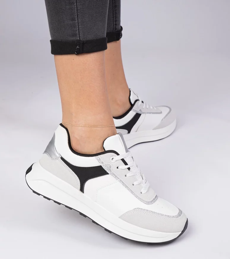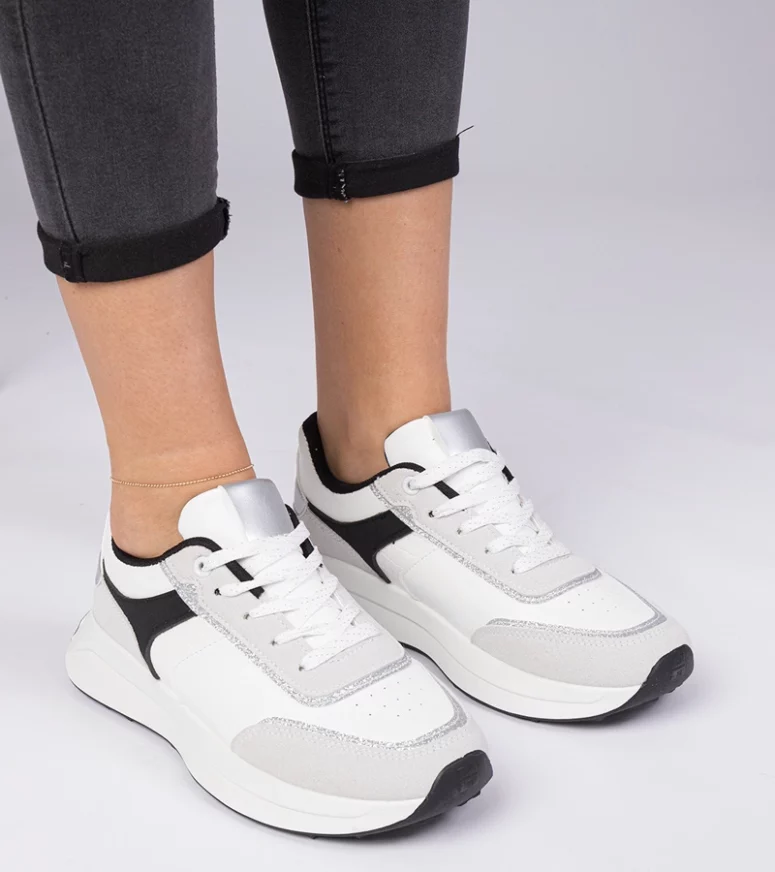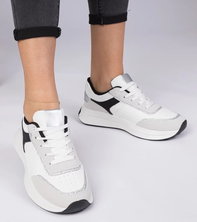 Nasze białe sneakersy zostały zaprojektowane z myślą o kobietach, które cenią sobie modny wygląd i komfort. Wykonane z wysokiej jakości materiałów, zapewniają trwałość i długotrwałe użytkowanie. Podeszwa wykonana z elastycznej gumy gwarantuje doskonałą przyczepność i amortyzację, co sprawia, że każdy krok jest przyjemnością.