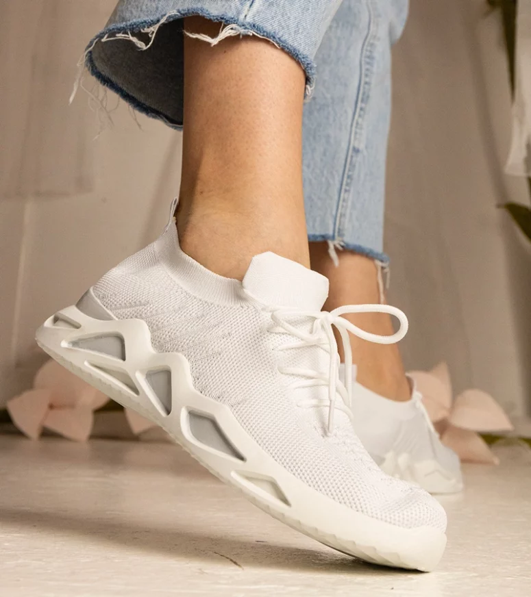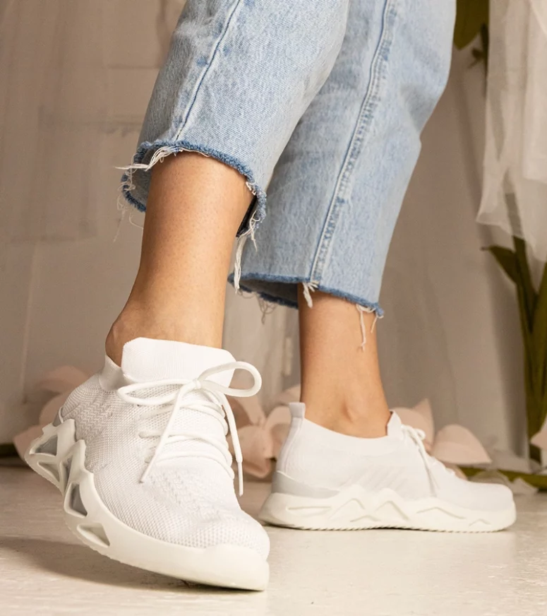 Białe sneakersy Miyana wyróżniają się nie tylko swoim minimalistycznym, ale zarazem eleganckim wyglądem, ale również niezwykłą wygodą użytkowania. Ich skarpetkowa cholewka idealnie dopasowuje się do kształtu stopy, zapewniając komfort na najwyższym poziomie przez cały dzień. To doskonały wybór zarówno na codzienne spacery, jak i na bardziej wymagające aktywności.