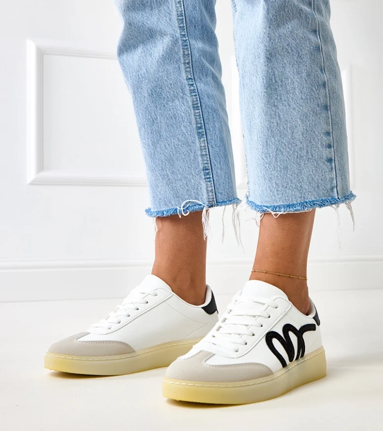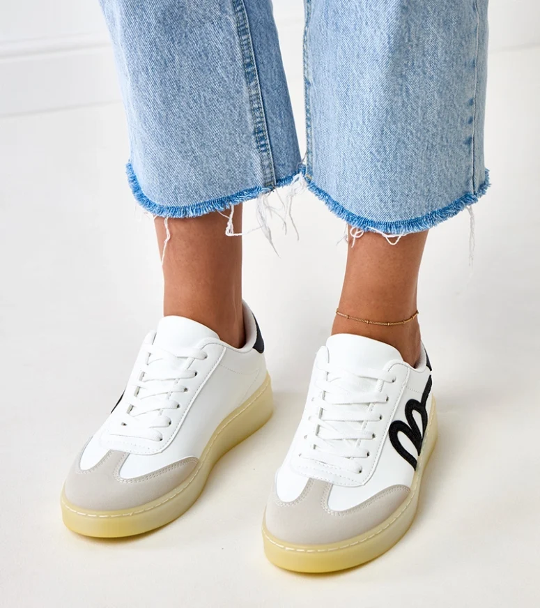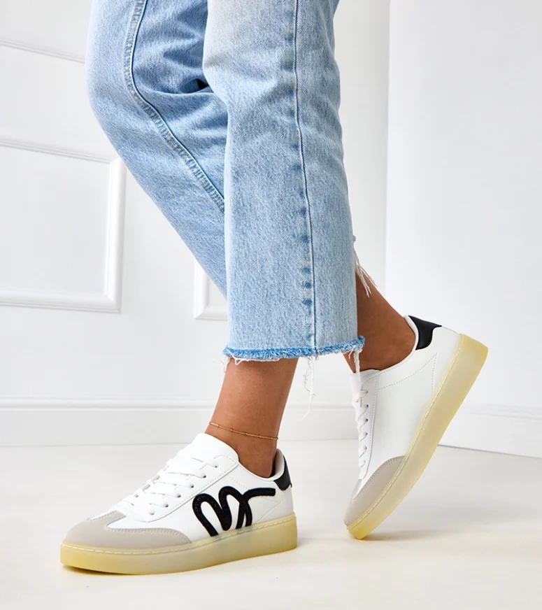 Unikalny czarny motyw na białym tle sprawia, że te sneakersy pasują do wielu stylizacji, od casualowych po bardziej eleganckie. Idealnie komponują się z jeansami, sukienkami czy szortami, dodając charakteru każdemu outfitowi. Niezależnie od okazji, białe sneakersy z czarnym motywem Izabell będą doskonałym uzupełnieniem Twojego looku.