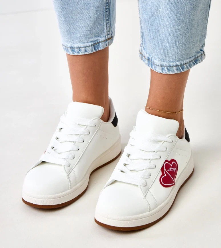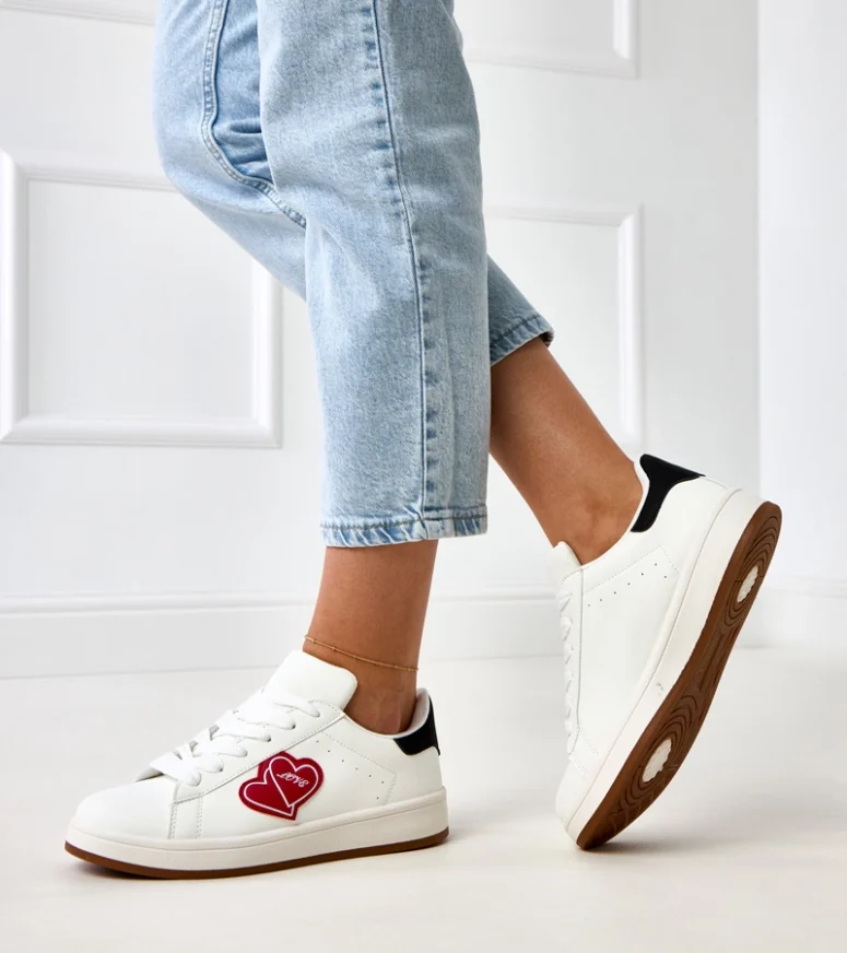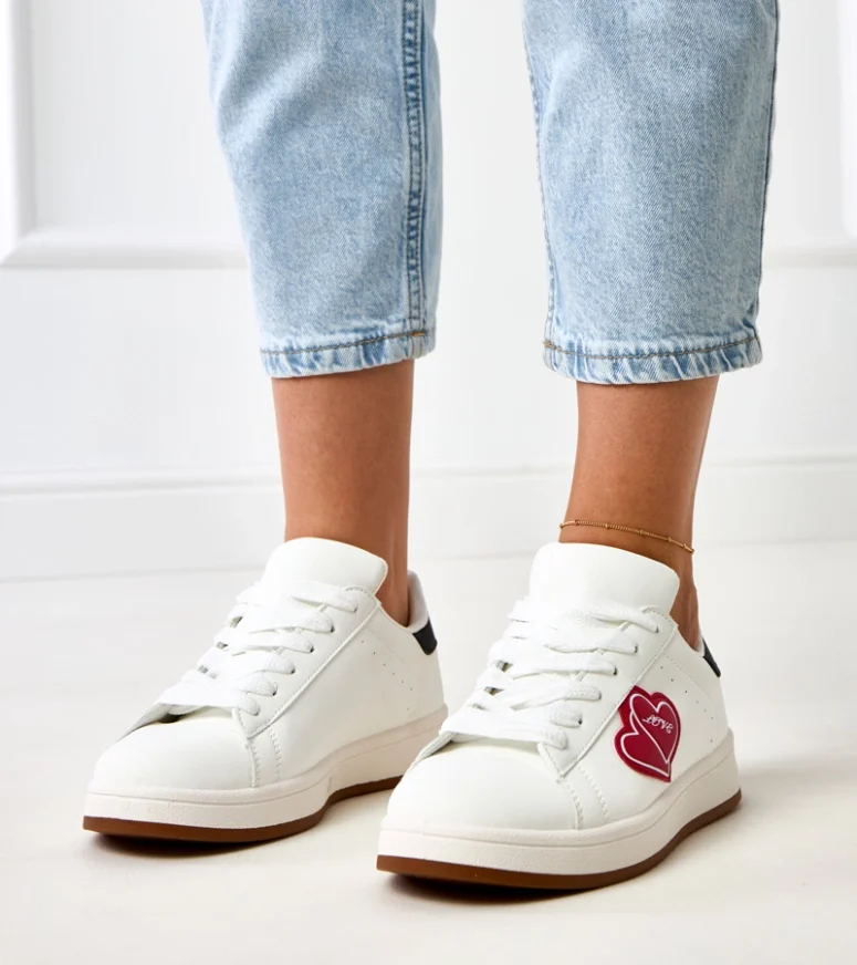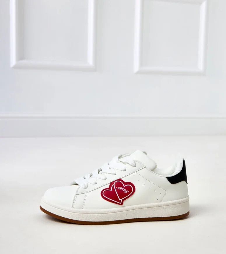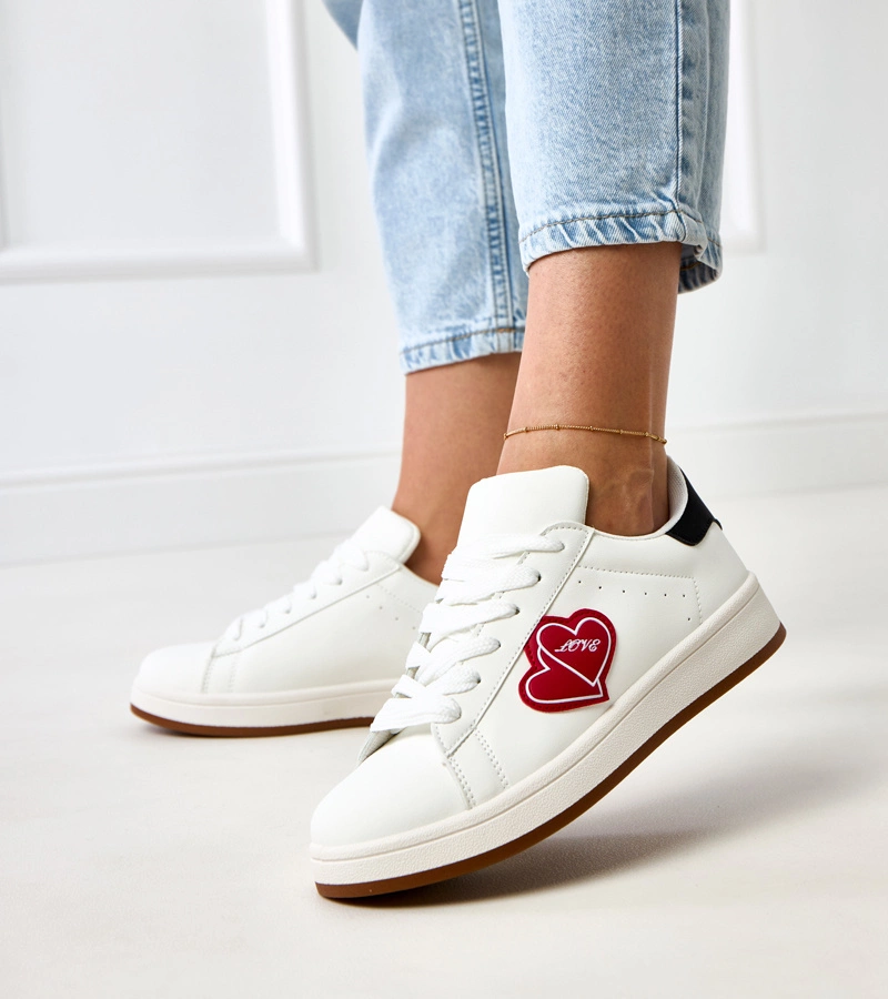 Białe sneakersy na platformie z czerwonymi serduszkami Tela – Gemre