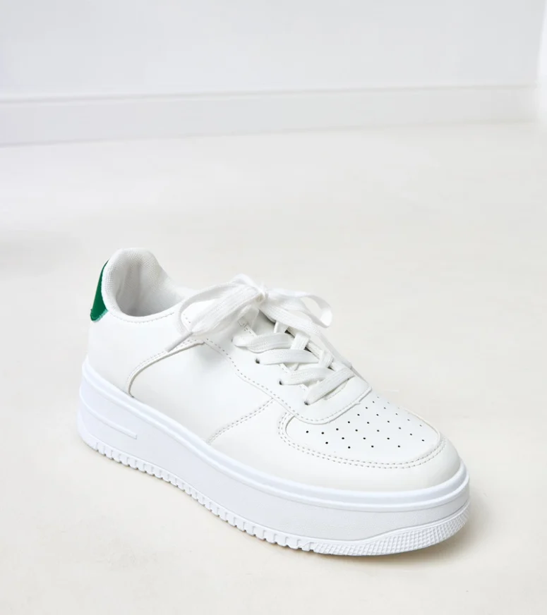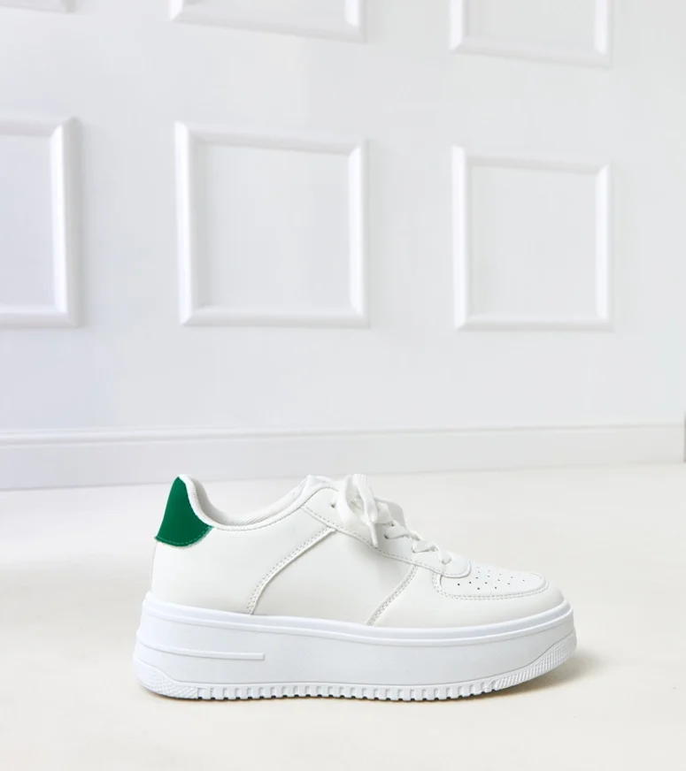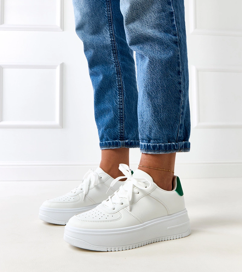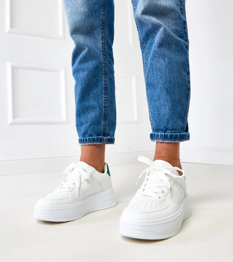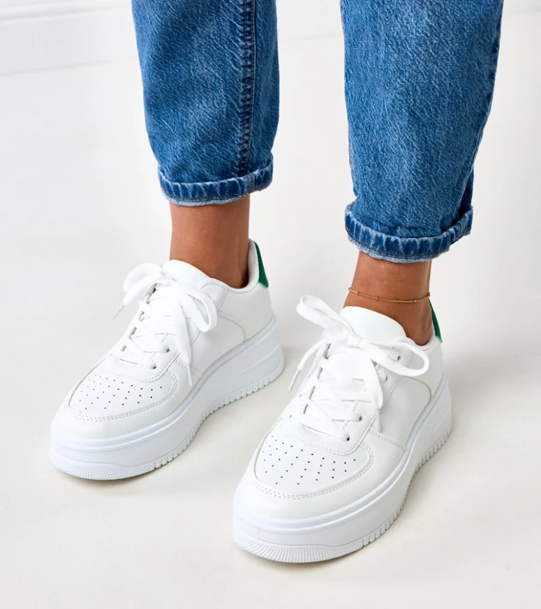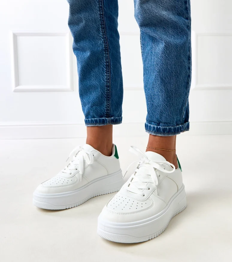 Odkryj nowy wymiar stylu z białymi sneakersami na platformie z zieloną wstawką Britney od marki Gemre. Te wyjątkowe sneakersy to idealne połączenie nowoczesnego designu i komfortu, które z pewnością przyciągną wzrok na ulicy. Dzięki swojej unikalnej konstrukcji, te buty doskonale sprawdzą się zarówno w codziennych, jak i bardziej eleganckich stylizacjach.