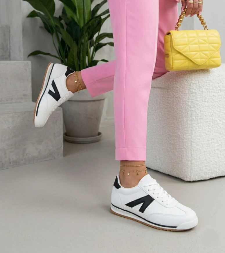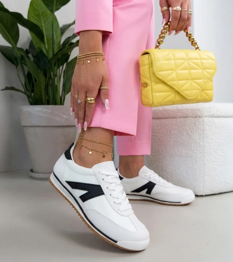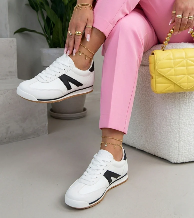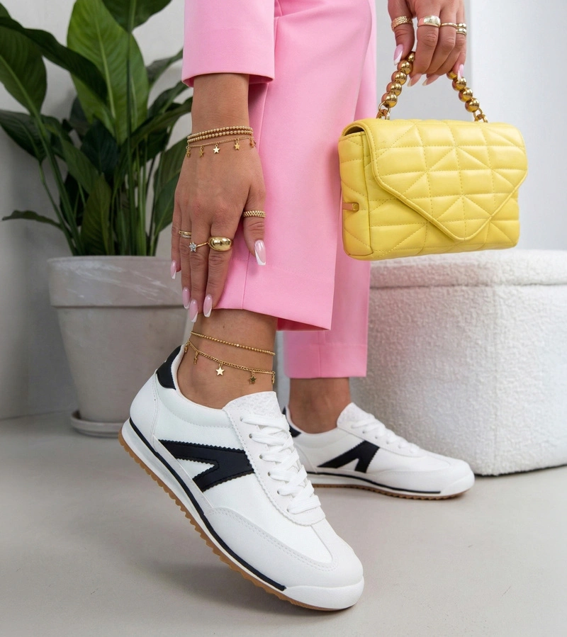 Białe sneakersy sportowe z czarnymi elementami Saga