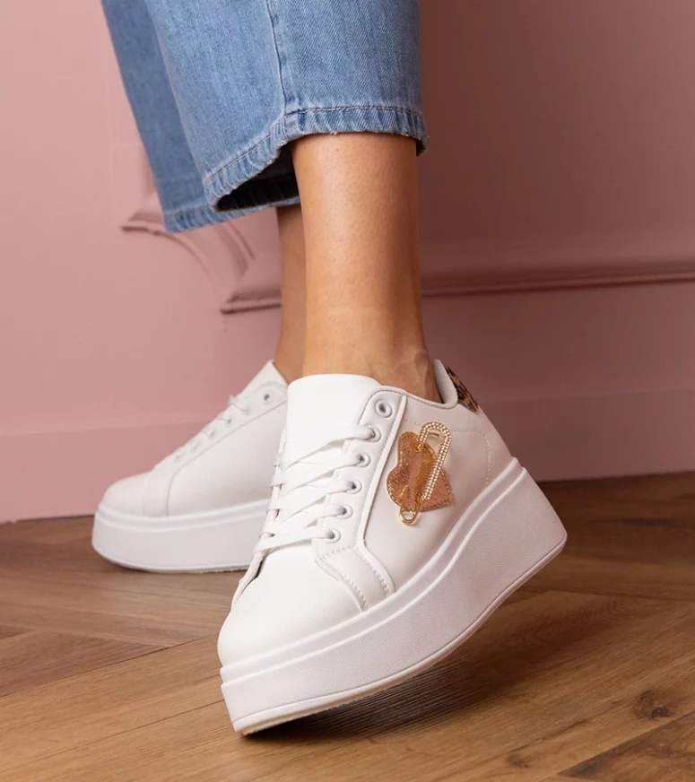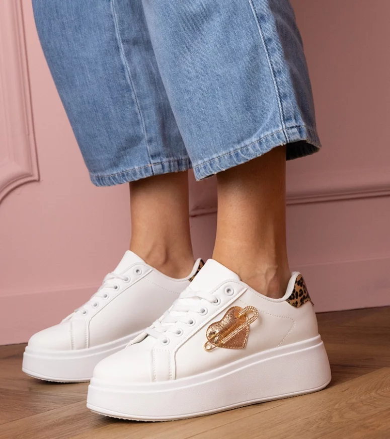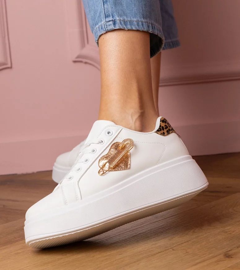 Białe sneakersy z panterkowym dodatkiem Lerisol