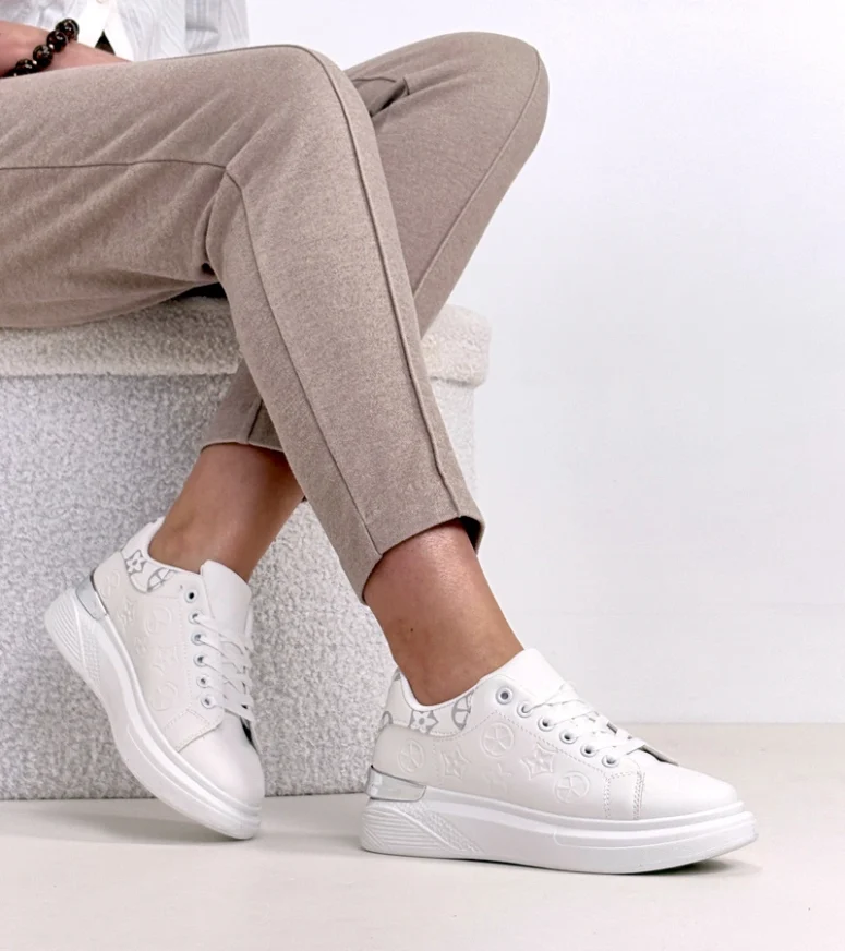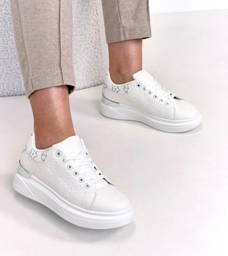Białe Sneakersy Zdobione Tłoczeniem Peyton