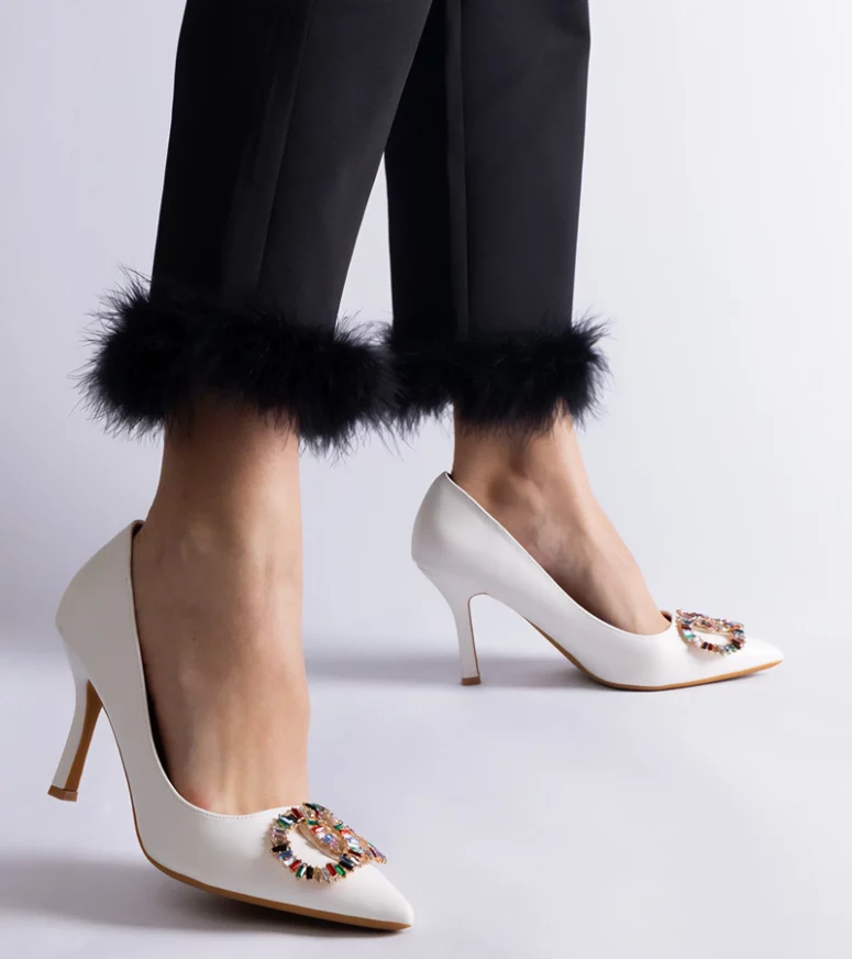 Przedstawiamy eleganckie białe szpilki zdobione kolorowymi cyrkoniami Callsa od renomowanej marki Gemre. Te wyjątkowe szpilki to idealny wybór dla kobiet, które cenią sobie styl i elegancję. Dzięki unikalnemu wzornictwu i dbałości o detale, te buty staną się niezastąpionym elementem Twojej garderoby.