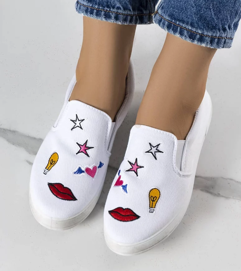 Prezentujemy wam czarne tenisówki Anais, buciki maja wszyte elastyczne wstawki u góry cholewki dla lepszego dopasowania, ozdobione są kolorowymi haftami. Numeracja zaniżona, sugerujemy wybrać rozmiar większe. Obuwie posiada lekkie przebarwienia na podeszwie.