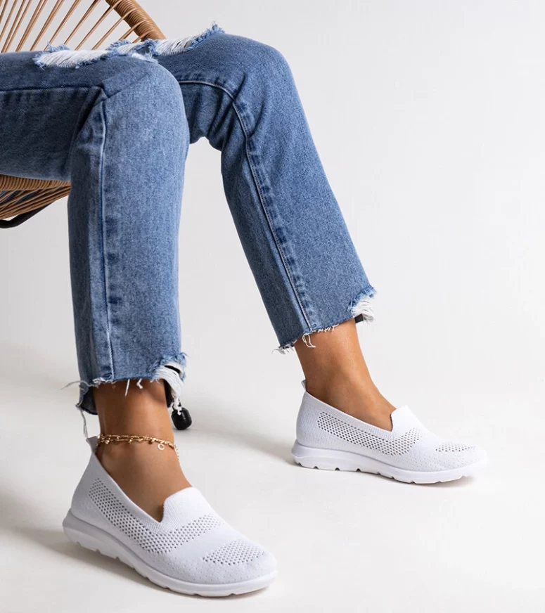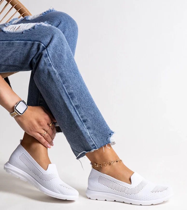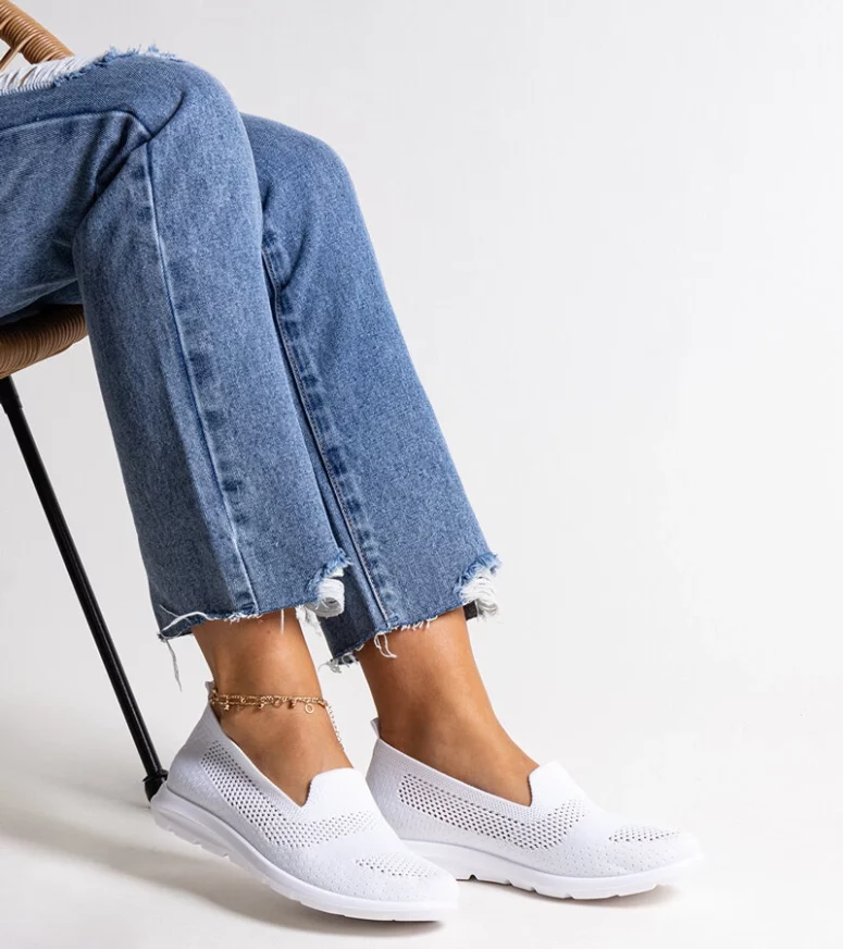 Białe tenisówki na piankowej podeszwie Rahima to idealne obuwie dla osób ceniących sobie modernistyczny styl i wygodę. Ich niski, migdałkowy nosek sprawia, że są doskonałe na letnie dni, kiedy chcemy czuć się komfortowo i stylowo jednocześnie. Dodatkowo ażurowe detale nadają im lekkości i elegancji, co sprawia, że są nie tylko praktyczne, ale również bardzo chic. Dzięki temu, że są wsuwane, można je szybko założyć i zawsze wyglądają świetnie. Idealne rozwiązanie na gorące dni!