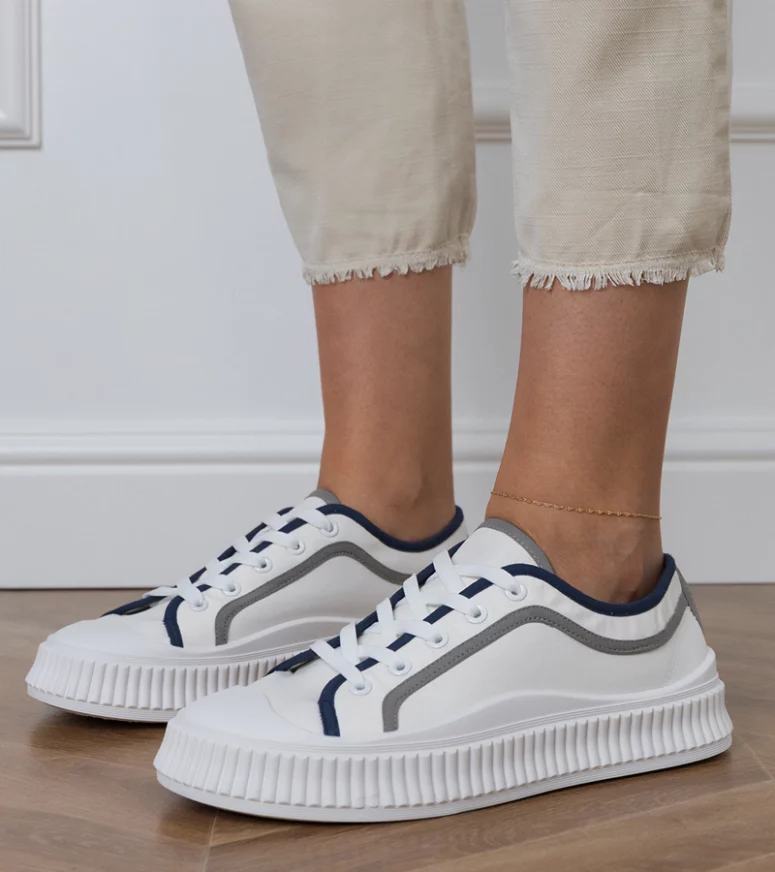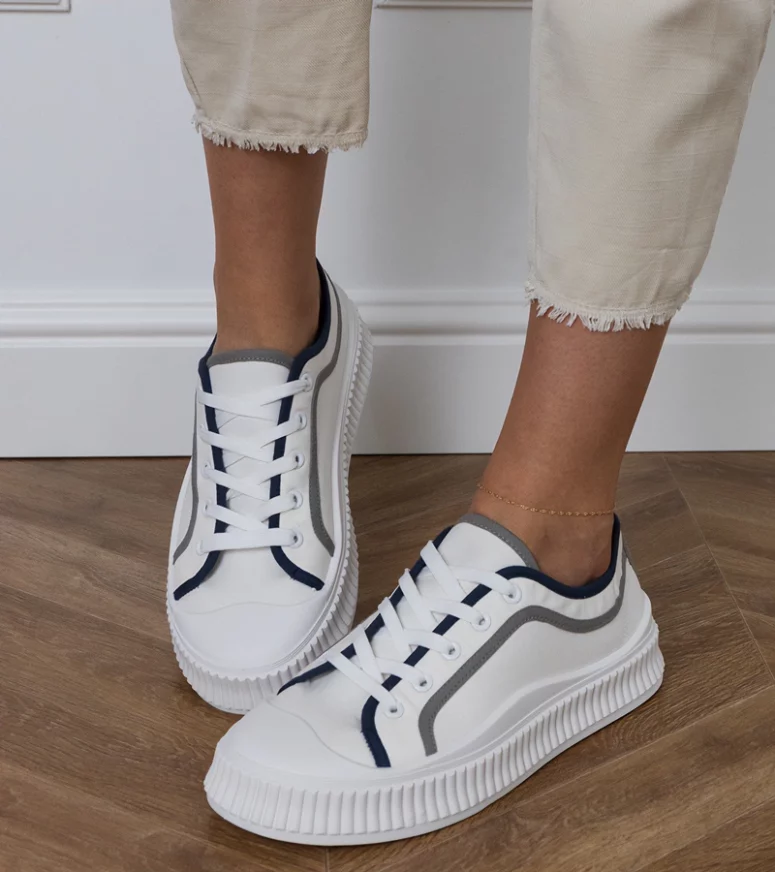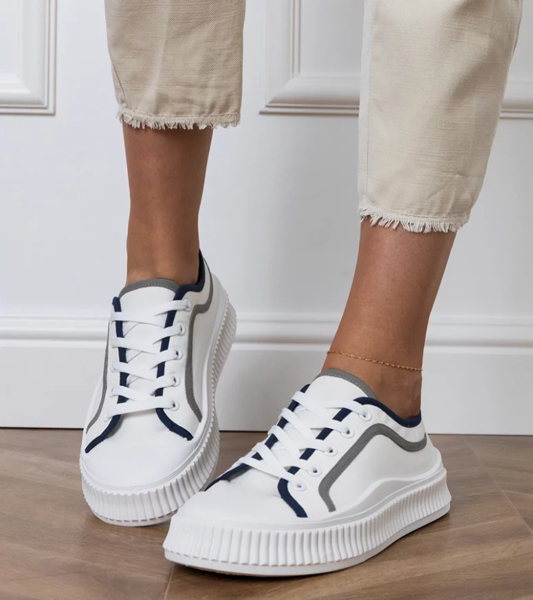 Te trampki damskie na platformie zostały zaprojektowane z myślą o komforcie użytkowania przez cały dzień. Podwyższona podeszwa nie tylko optycznie wysmukla sylwetkę, ale również doskonale amortyzuje każdy krok. Dzięki temu białe trampki na platformie są idealne zarówno do dłuższych spacerów po mieście, jak i intensywnego dnia w biegu. Lekka konstrukcja oraz dopasowany krój sprawiają, że stopa czuje się stabilnie i swobodnie, a miękka wkładka zapewnia wygodę nawet podczas wielogodzinnego noszenia.