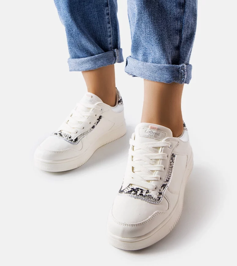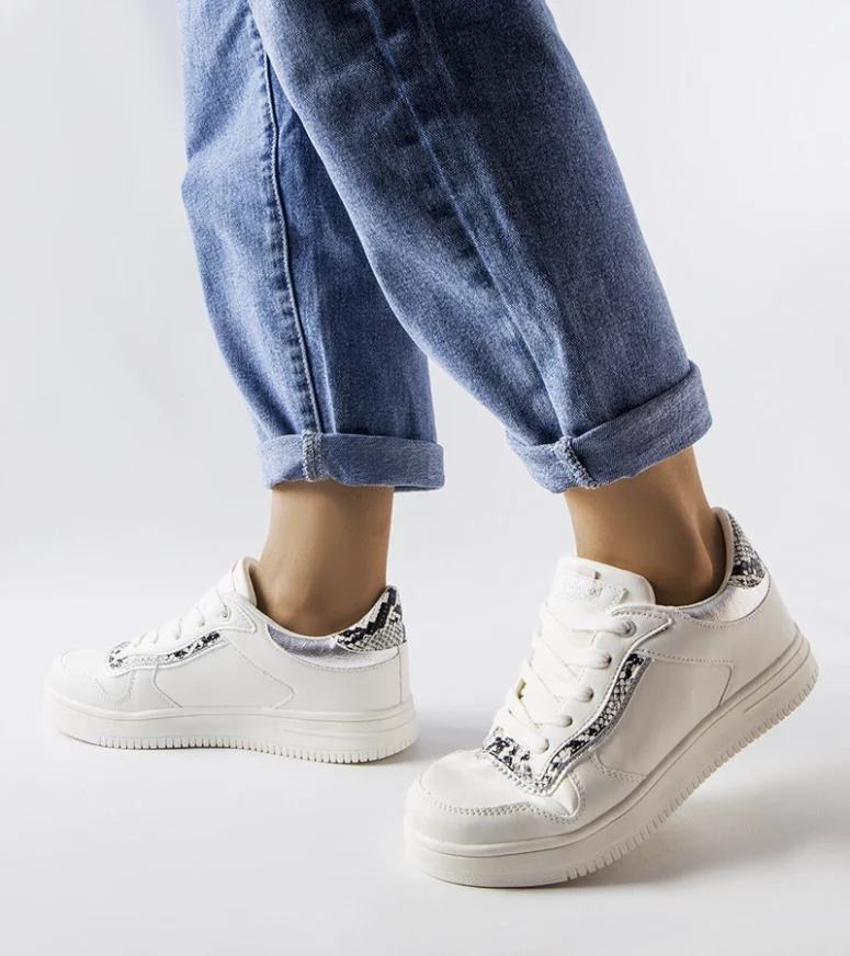 Buty te posiadają sznurowane zamknięcie, które umożliwia ich dopasowanie do indywidualnych preferencji noszącej je osoby. Wykonane z gumy podeszwy gwarantują doskonałą przyczepność na różnego rodzaju nawierzchniach, co sprawia, że są one świetnym wyborem zarówno na codzienne spacery, jak i na aktywności sportowe. Sznurówki w kontrastowym kolorze dodają charakteru tym białym sneakersom, podkreślając ich stylowy wygląd. Okrągły nosek nadaje butom bardziej nowoczesny i świeży wygląd, który wpisuje się w aktualne trendy mody. Te białe sneakersy z eko skóry Nelma są absolutnym sztos! Ich oryginalny design, połączony z wysoką jakością wykonania, sprawia, że są one idealną propozycją dla każdej modnej i świadomej siebie kobiety. Niezależnie od okazji, te buty dodadzą Twoim stylizacjom pewnego pazura i sprawią, że będziesz czuć się wyjątkowo.