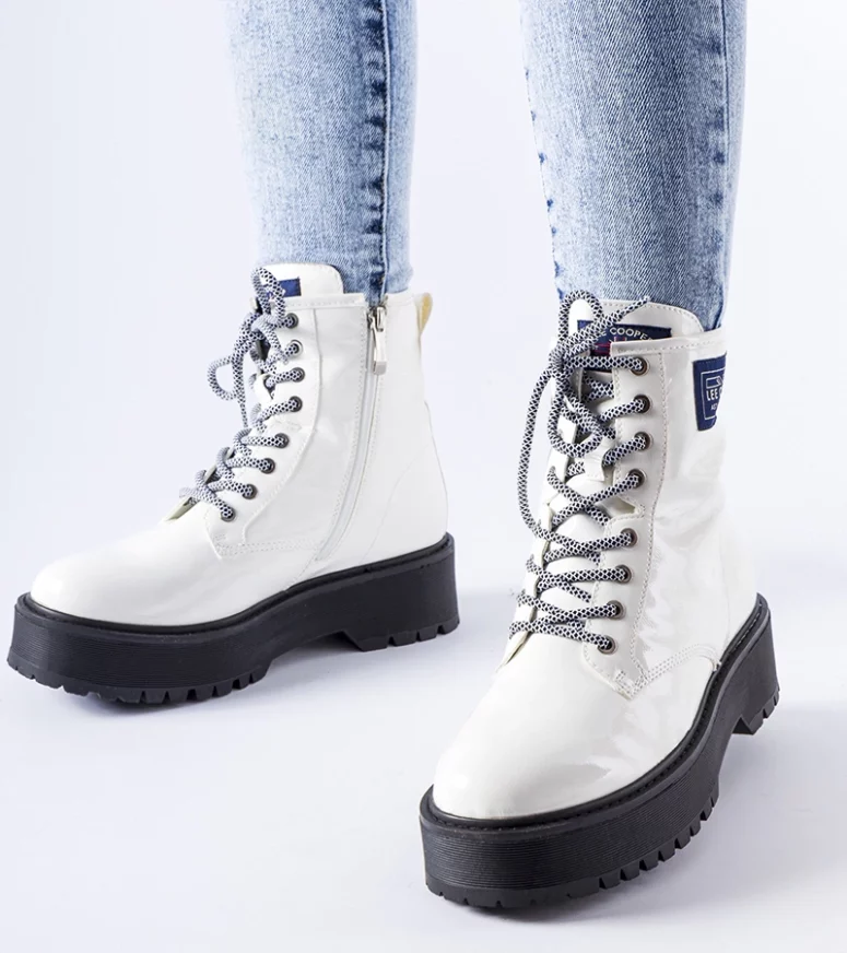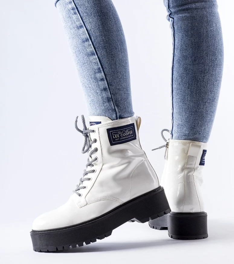 Buty mają średni obcas, który doda Ci nieco elegancji, ale jednocześnie są na tyle wygodne, że możesz je nosić przez cały dzień. Ich lakierowane wykończenie nadaje im stylowego wyglądu, który pasuje do wielu różnych outfitów. Krój tych worków jest wysoki, sięgający za kostkę, co sprawia, że są one zarówno praktyczne, jak i modne. Bez względu na to, czy idziesz na spacer po mieście czy spotkanie ze znajomymi, te białe workery będą idealnym must-have w Twojej garderobie. Dodatkowo, płaski obcas sprawia, że są one wygodne do noszenia przez dłuższy czas. Niezależnie od tego, czy idziesz na zakupy czy zwiedzasz miasto, te buty będą Ci towarzyszyć w każdej sytuacji. Nie czekaj dłużej – białe workery Lee Cooper LCJ-21-47-0666LB to doskonały wybór na zimowe dni, które łączą w sobie funkcjonalność, komfort i modny wygląd.