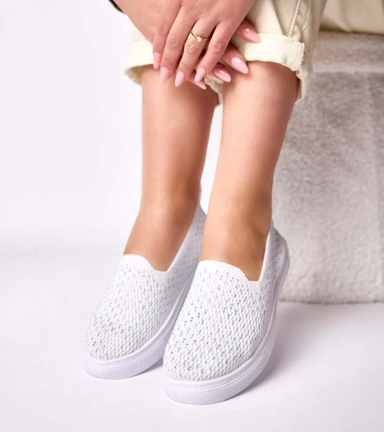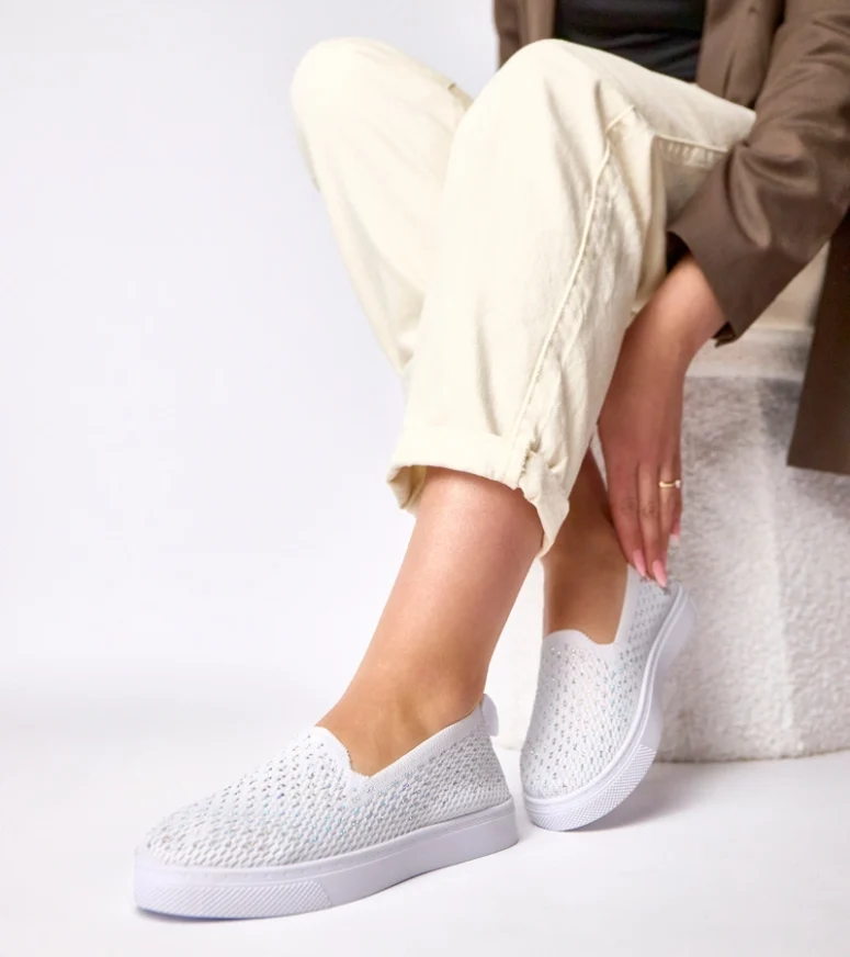 Białe wsuwane materiałowe tenisówki z cyrkoniami Gabrielle