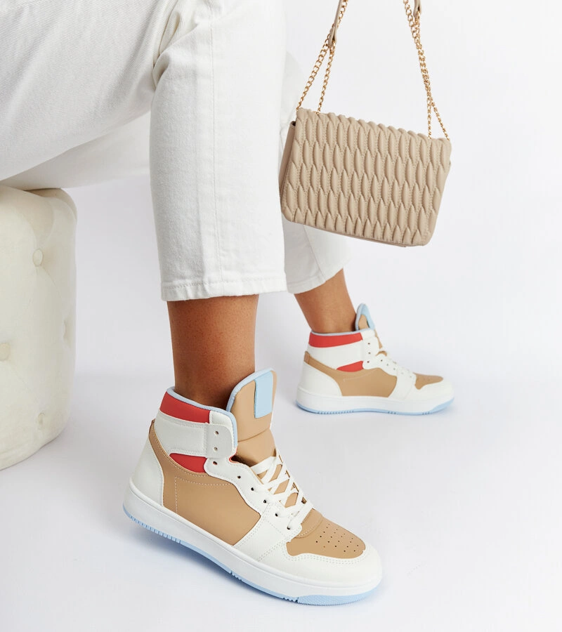 Buty mają okrągły nosek, który dodaje im stylu i sprawia, że są odpowiednie zarówno na co dzień, jak i na bardziej casualowe okazje. Wykonane z gumy podeszwy gwarantują doskonałą przyczepność i trwałość, a jednocześnie sprawiają, że są one lekkie i elastyczne. Niezwykle atrakcyjna cena tych sneakersów sprawia, że są one dostępne dla każdego, niezależnie od budżetu. Biało-beżowy kolor jest ponadczasowy i łatwo zestawia się z różnymi stylizacjami, dodając im świeżości i elegancji. Wysokie biało-beżowe sneakersy za kostkę Eagan to połączenie współczesnego designu, wygody i funkcjonalności, które będą idealnym uzupełnieniem garderoby każdego młodego entuzjasty mody.