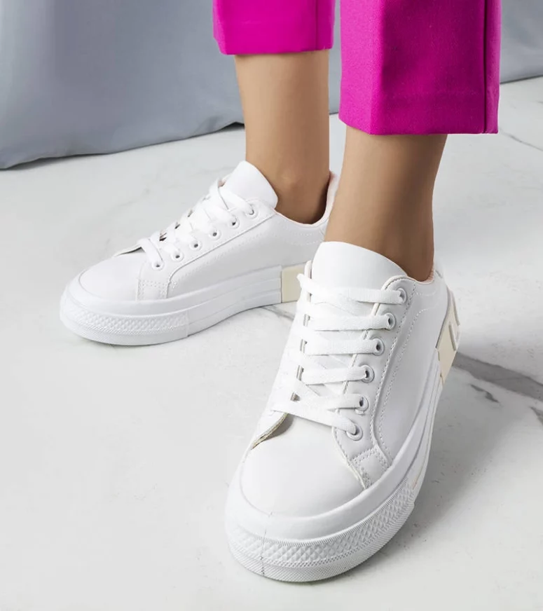 Tenisówki damskie z wysokiej jakości skóry ekologicznej cechują się starannością wykonania, minimalistycznym designem oraz uniwersalnym charakterem. Wysoki komfort użytkowania w połączeniu z uroczym wyglądem czyni prezentowany model pożądanym dodatkiem, którego nie może zabraknąć w garderobie żadnej kobiety. Biały kolor przełamany wstawką doda stylizacji wizualnej lekkości. Numeracja standardowa, prosimy sugerować się swoim rozmiarem.